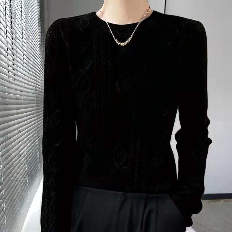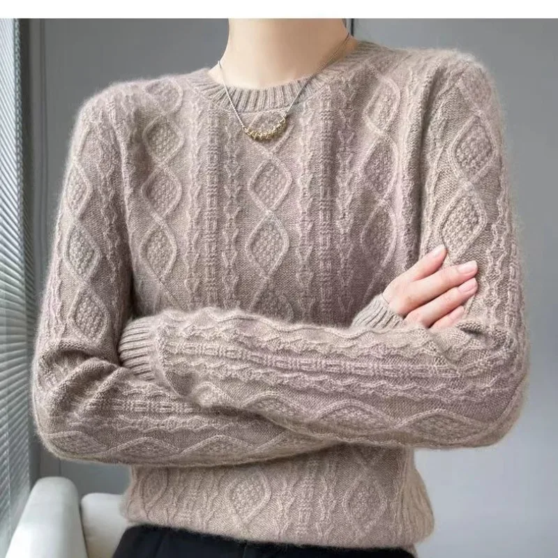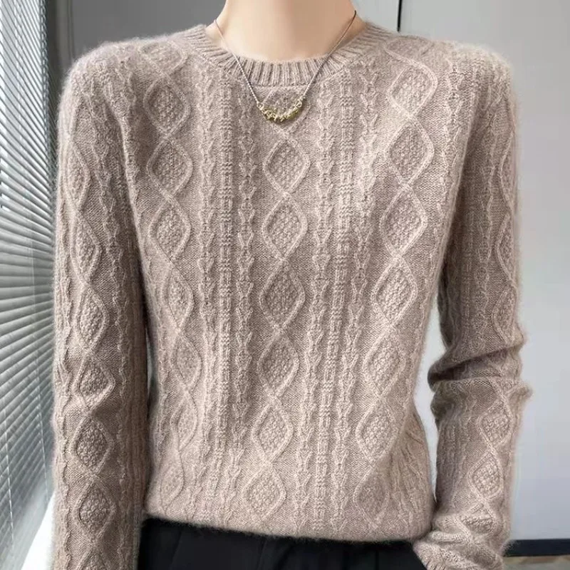 Nuovo stile autunno e inverno donna solido allentato o-collo maniche lunghe estrattori lavorati a maglia maglione vite filo moda Casual top 1Nuovo stile autunno e inverno donna solido allentato o-collo maniche lunghe estrattori lavorati a maglia maglione vite filo moda Casual top