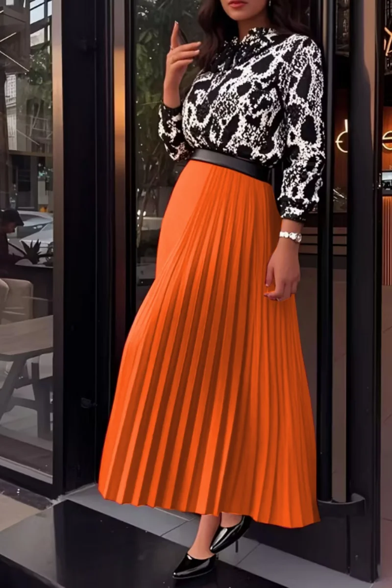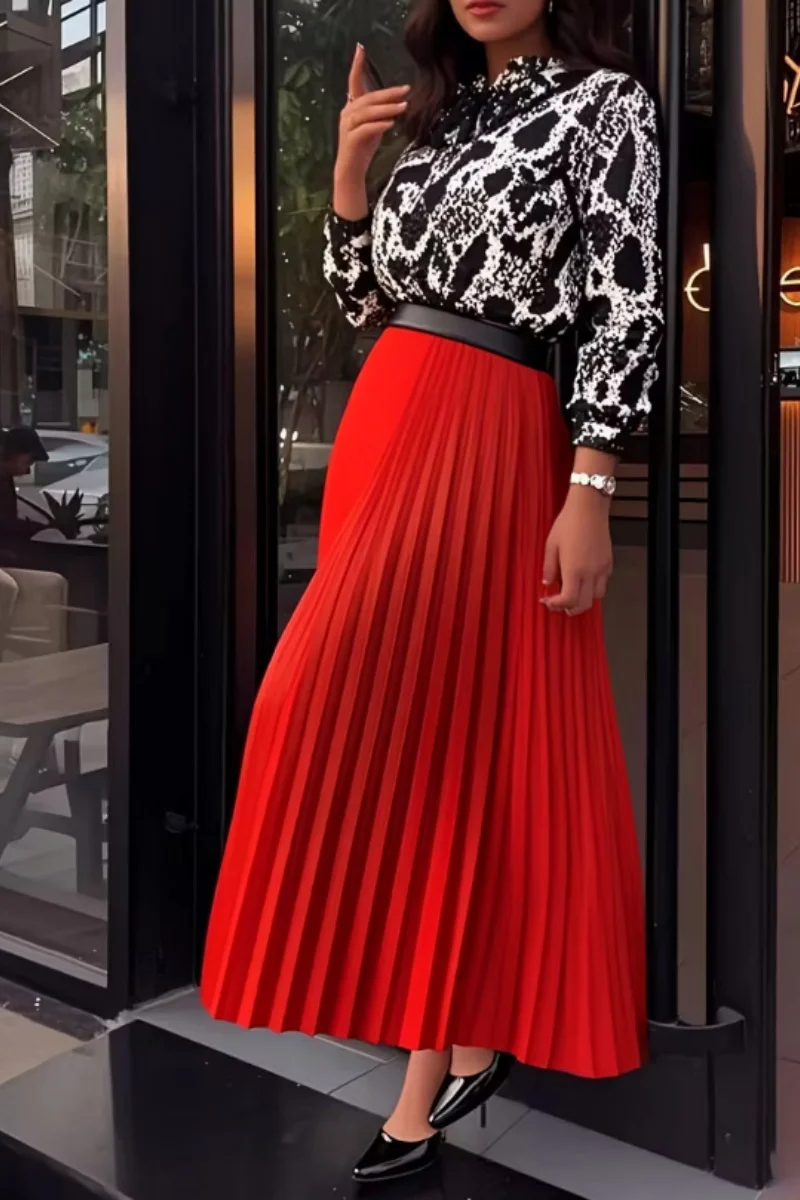 Nuovo stile estivo in Europa e America, versatile gonna a pieghe fisarmonica da donna, a vita alta, dimagrante, che copre i fianchi,