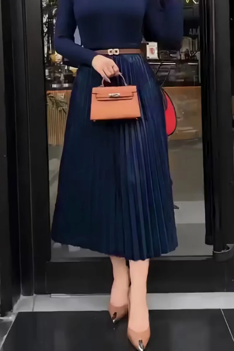 Nuovo stile estivo in Europa e America, versatile gonna a pieghe fisarmonica da donna, a vita alta, dimagrante, che copre i fianchi,