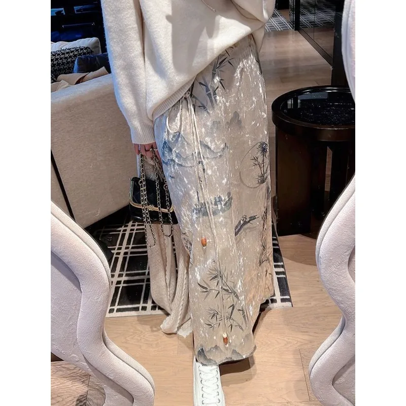 Nuovo temperamento di bambù in stile cinese stampato velluto albicocca Nuova gonna invernale che abbraccia i fianchi