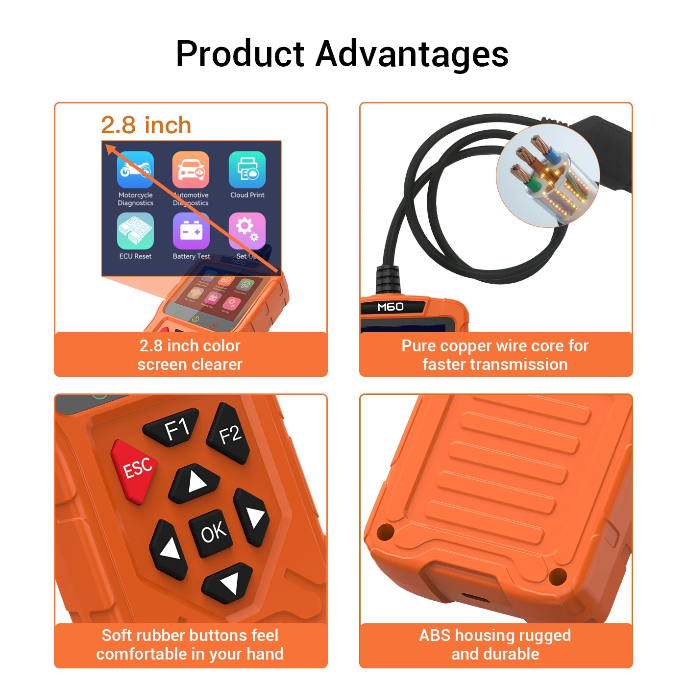 NUOVO scanner Topdiag M60 OBD2 per codice di errore moto e veicolo Lettura gratuita ECU Ripristino strumento diagnostico per auto DTC di ricerca automobilistica