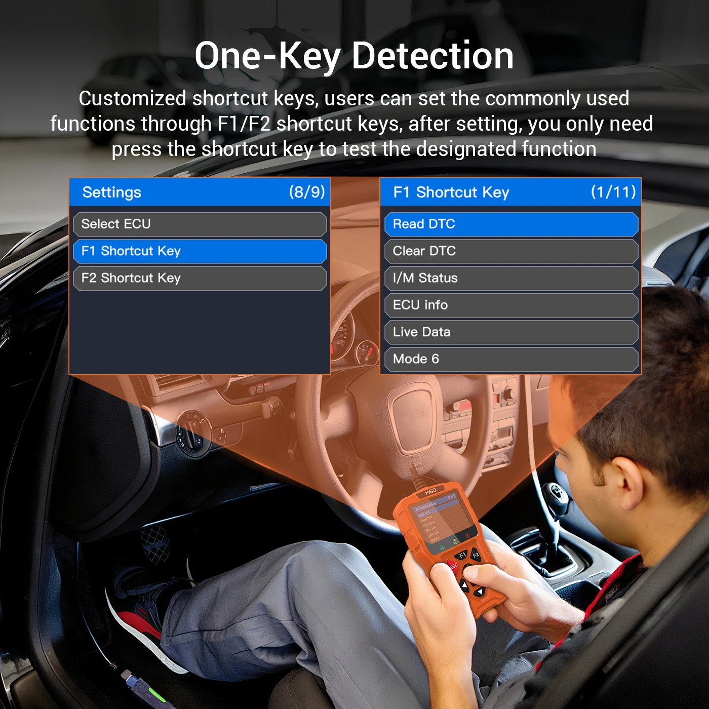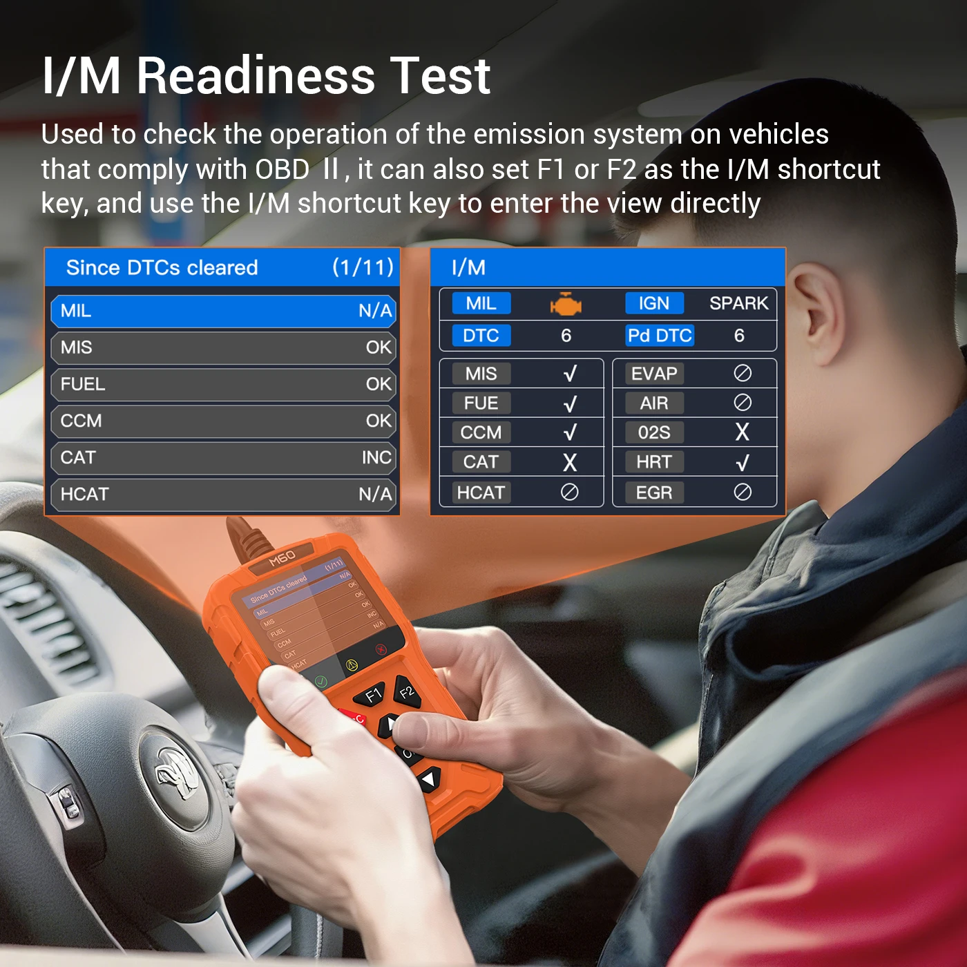 Utilizzato per verificare il funzionamento del sistema di emissione su veicoli conformi a OBD ll, può anche impostare F1 o F2 come tasto di scelta rapida l/M e utilizzare il tasto di scelta rapida l/M per accedere direttamente alla vista