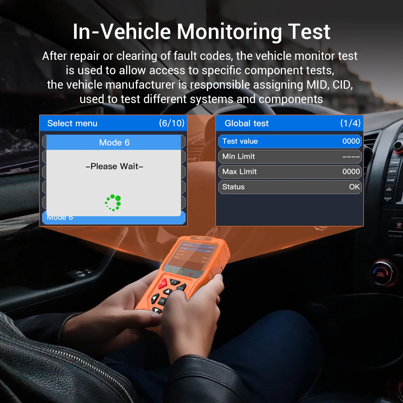 Dopo la riparazione o la cancellazione dei codici di errore, il monitor del veicolo viene utilizzato per consentire l’accesso a test di componenti specifici, il produttore del veicolo è responsabile dell’assegnazione di MID, CID, utilizzato per testare diversi sistemi e componenti