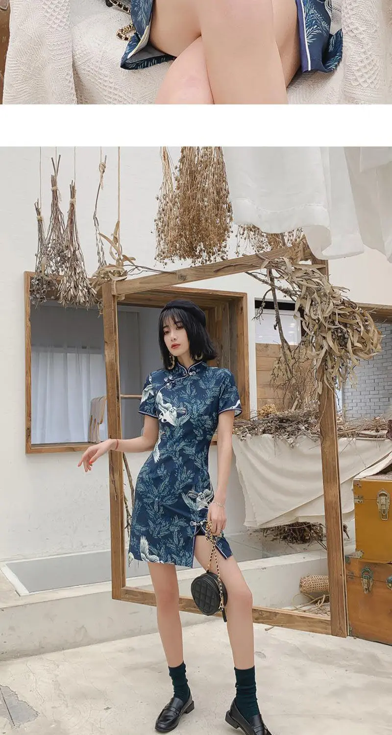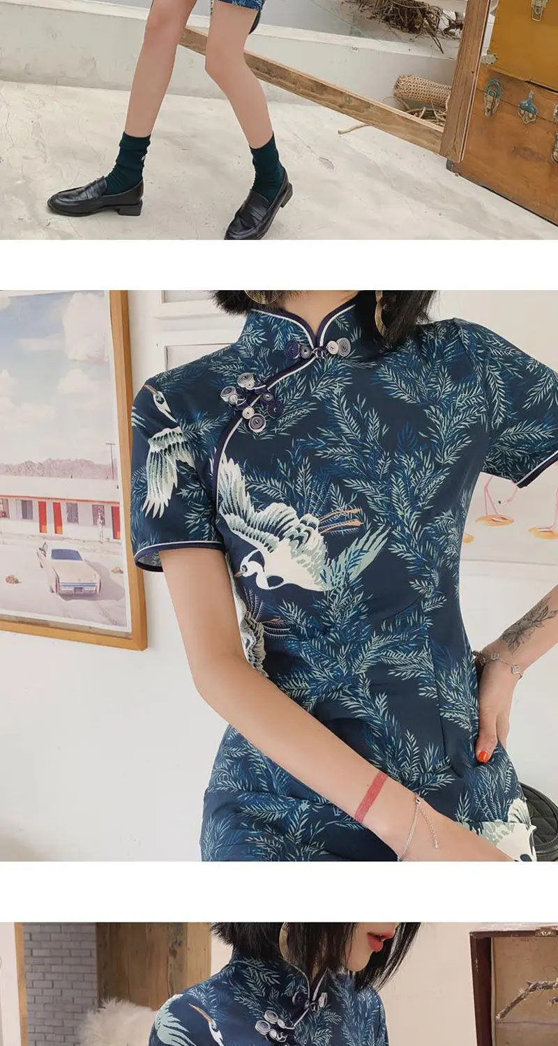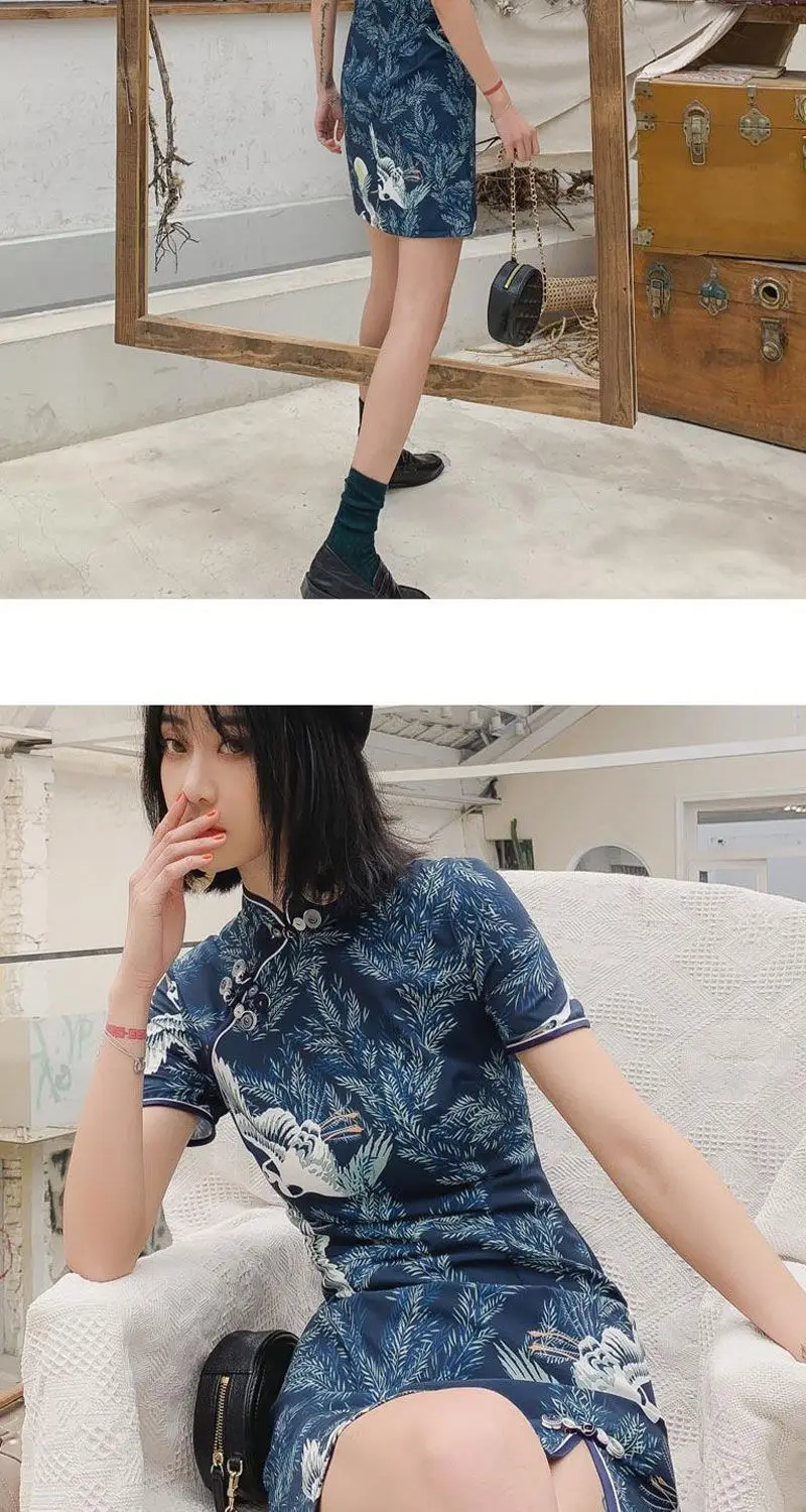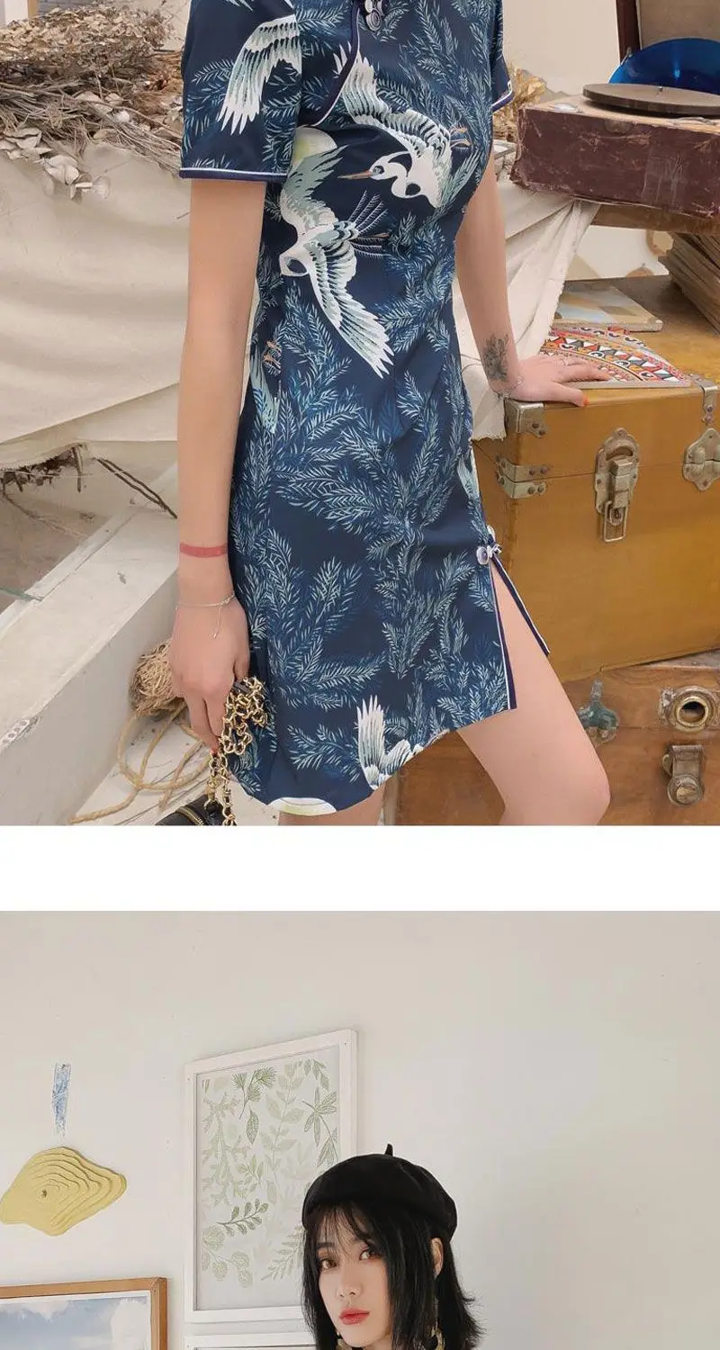 Nuovo vestito Cheongsam per il miglioramento quotidiano 2024 abito estivo a maniche corte in stile cinese retrò stile giovane a-line con stampa gru Qipao