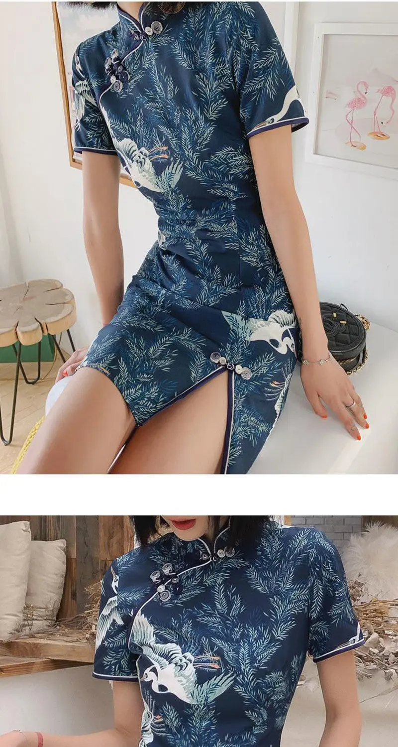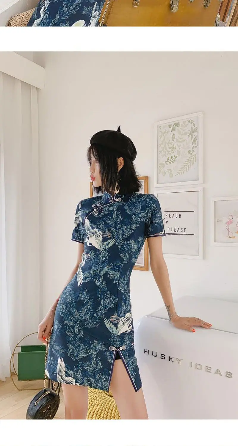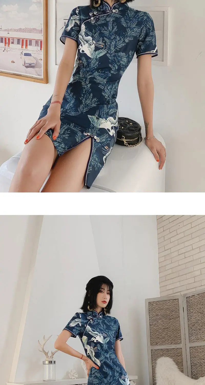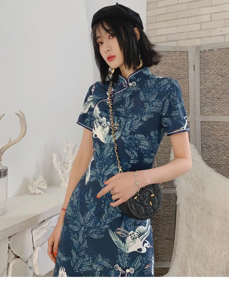 Nuovo vestito Cheongsam per il miglioramento quotidiano 2024 abito estivo a maniche corte in stile cinese retrò stile giovane a-line con stampa gru Qipao