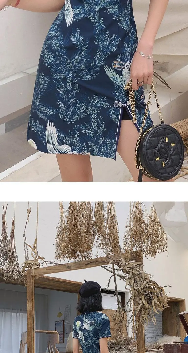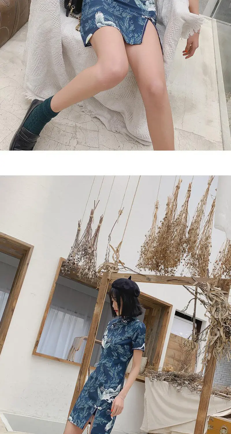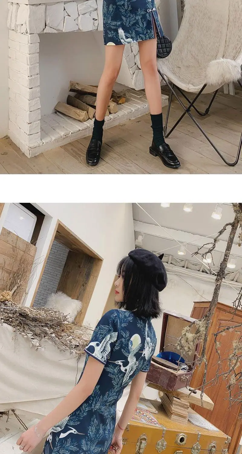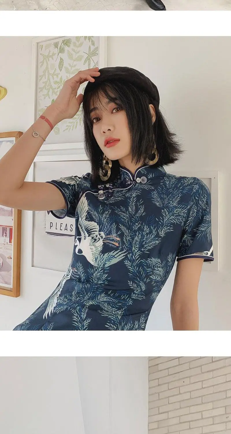 Nuovo vestito Cheongsam per il miglioramento quotidiano 2024 abito estivo a maniche corte in stile cinese retrò stile giovane a-line con stampa gru Qipao