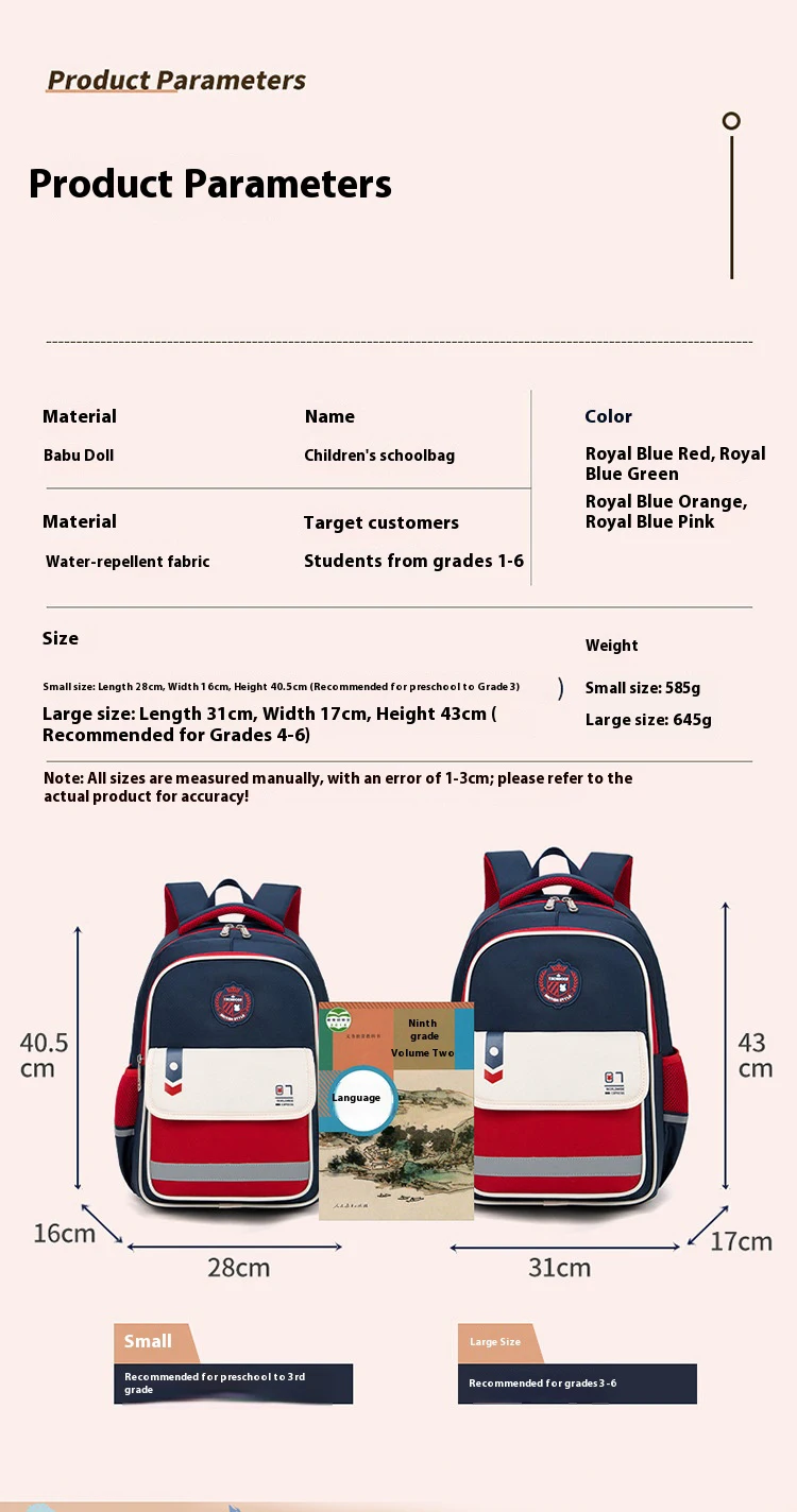 Nuovo zaino per studenti delle scuole elementari di età 1-6, leggero e resistente alle macchie per ragazzi e ragazze