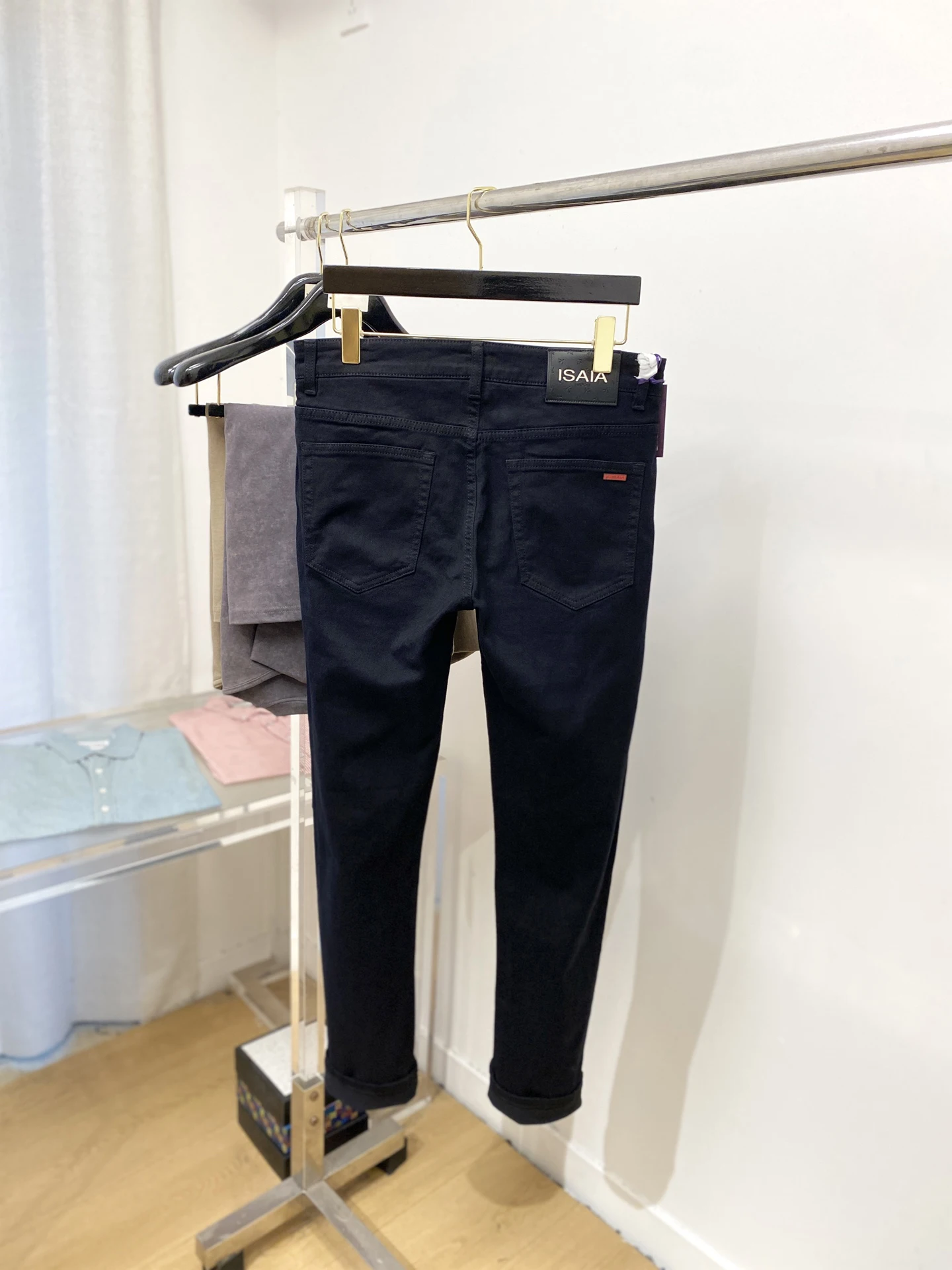 OECHSLI Jeans in cotone spesso da uomo 2025 Autunno Inverno nuovo ricamo elasticità cerniera Moda taglia dritta 29-38 Pantaloni neri