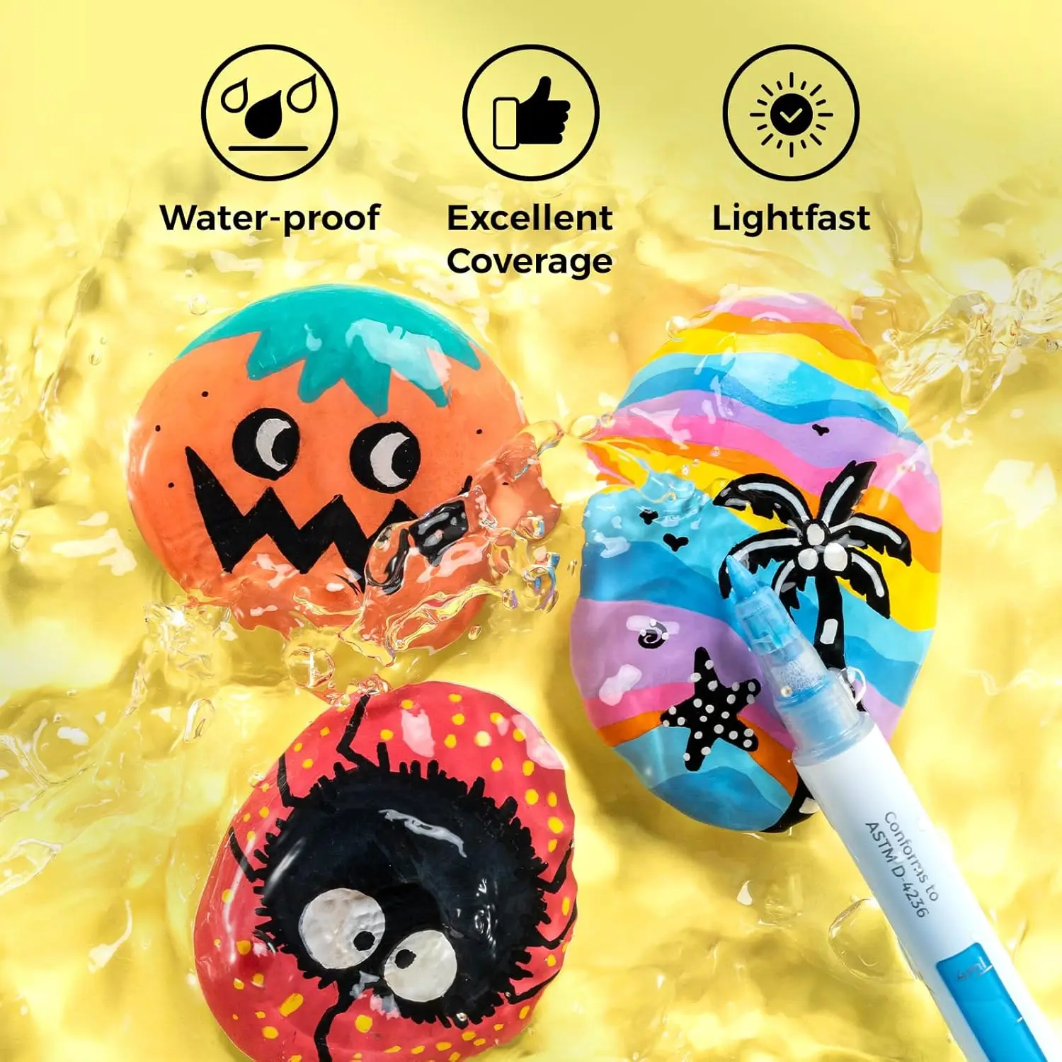 Ohuhu Pennarelli per vernice acrilica 48 Penne per vernice Punta reversibile Pennarelli acrilici impermeabili per pittura su roccia Uovo di Pasqua Legno Plastica