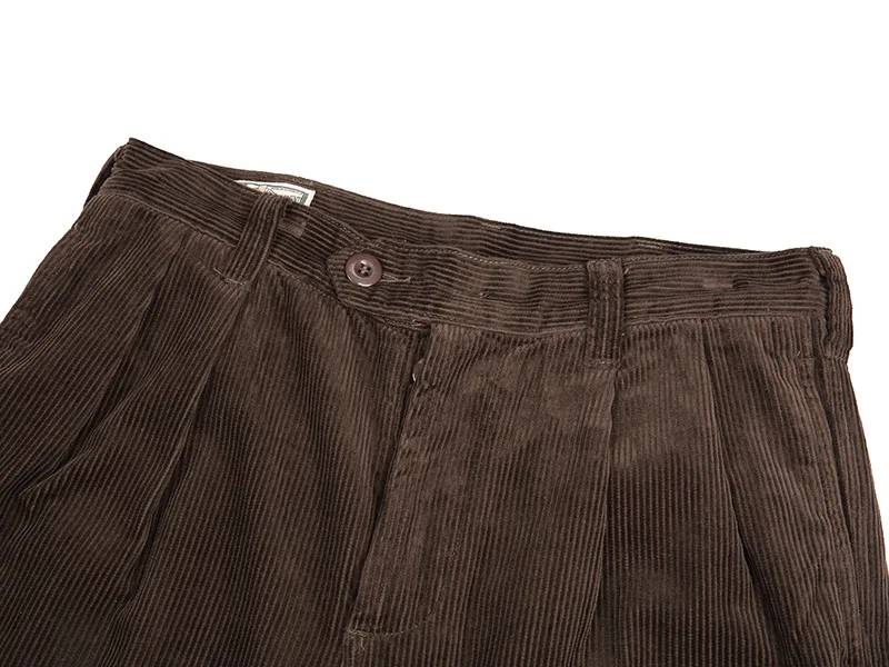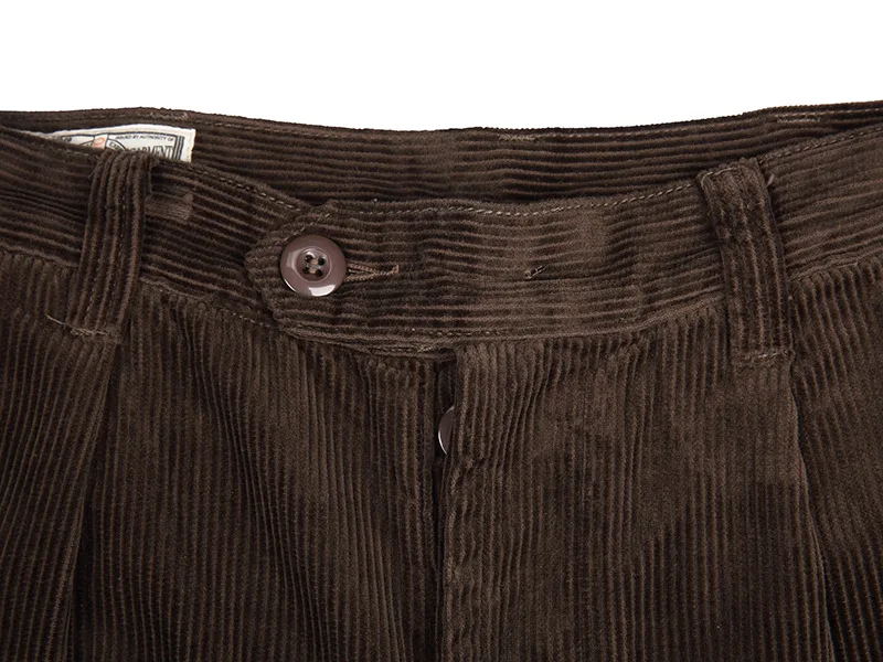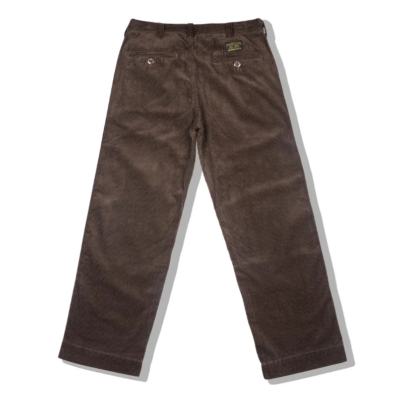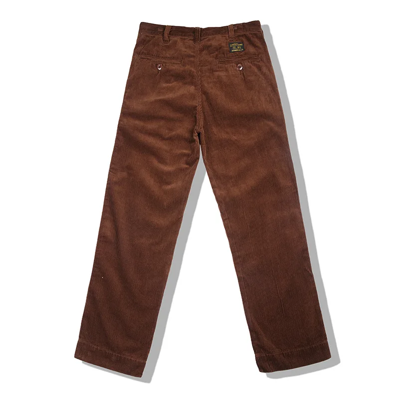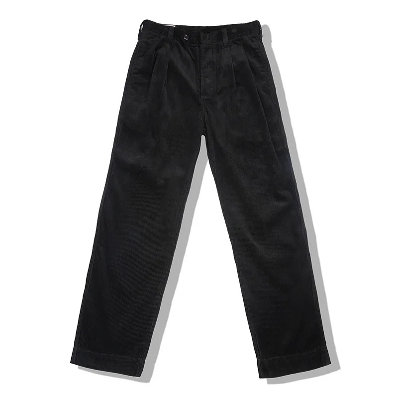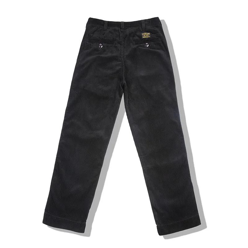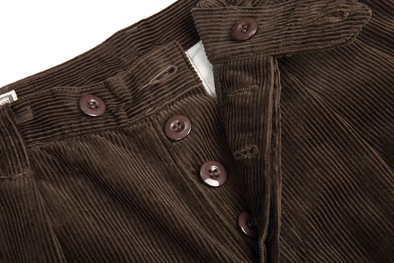 Questo è un nuovo pantalone essenziale in velluto a coste, dotato di un classico design a quattro tasche e una chiusura con bottoni sul davanti.