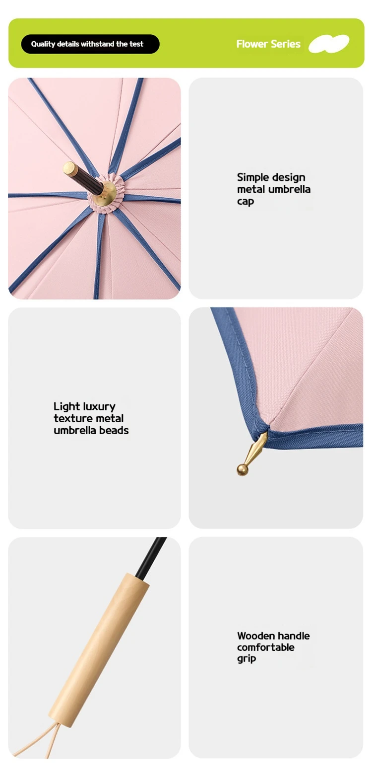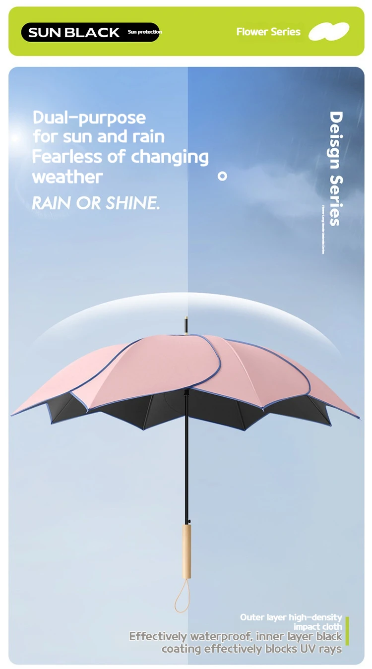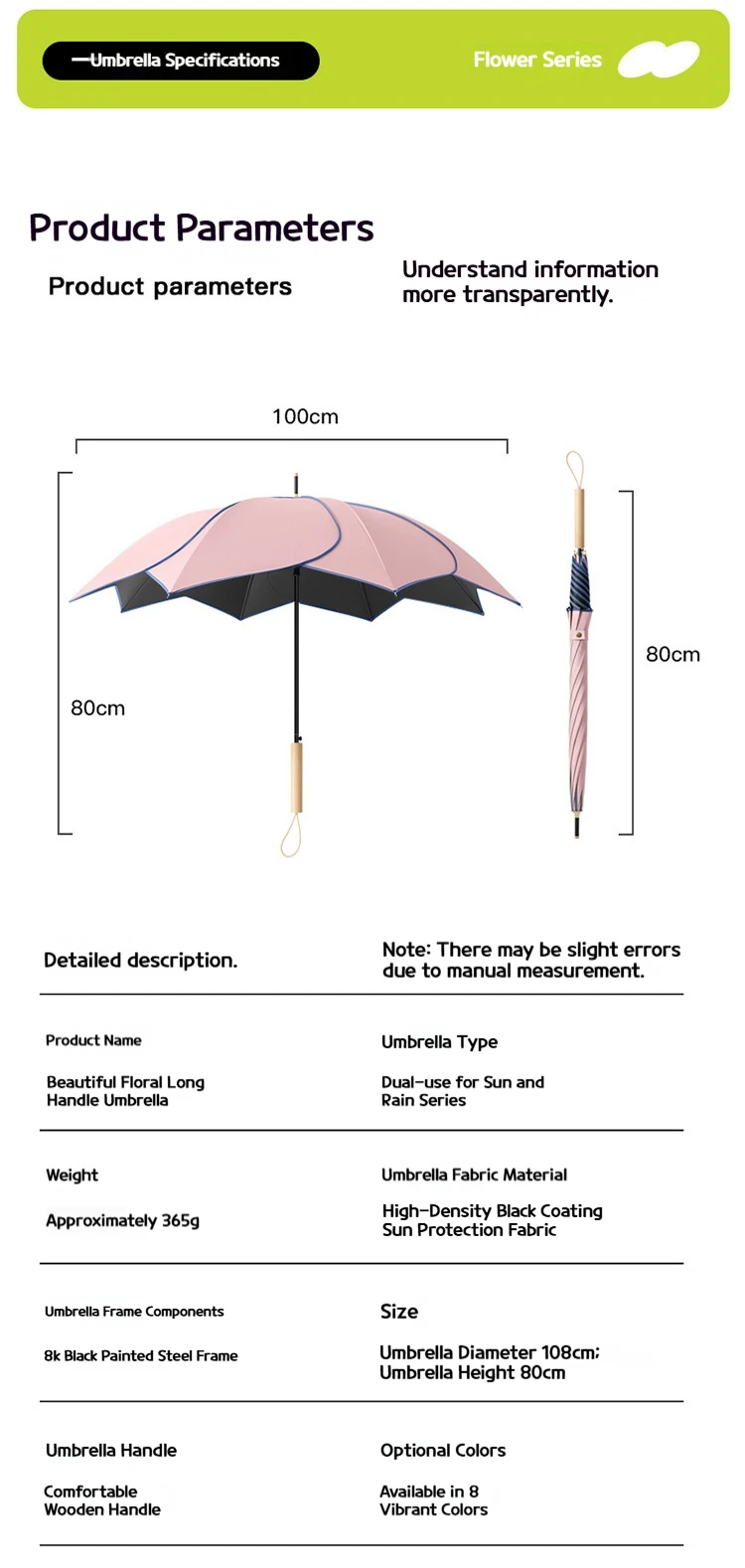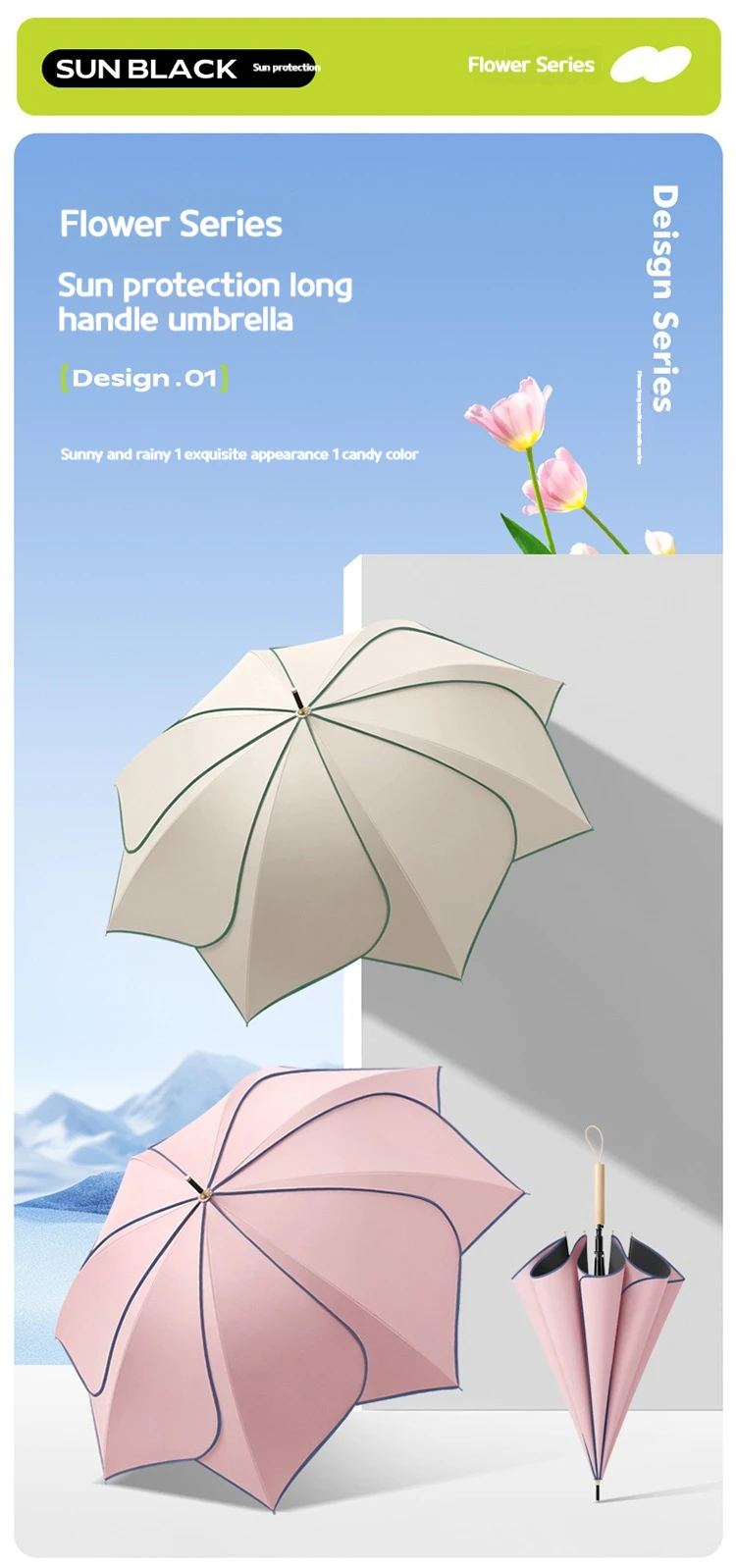 Ombrello a doppio uso per pioggia e sole con manico lungo a forma di fiore, protezione UV, protezione solare, ombrellone, ombrellone in vinile