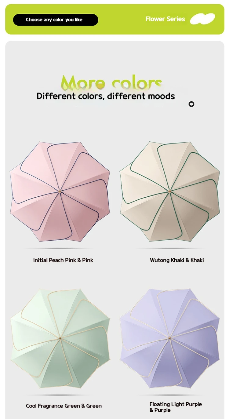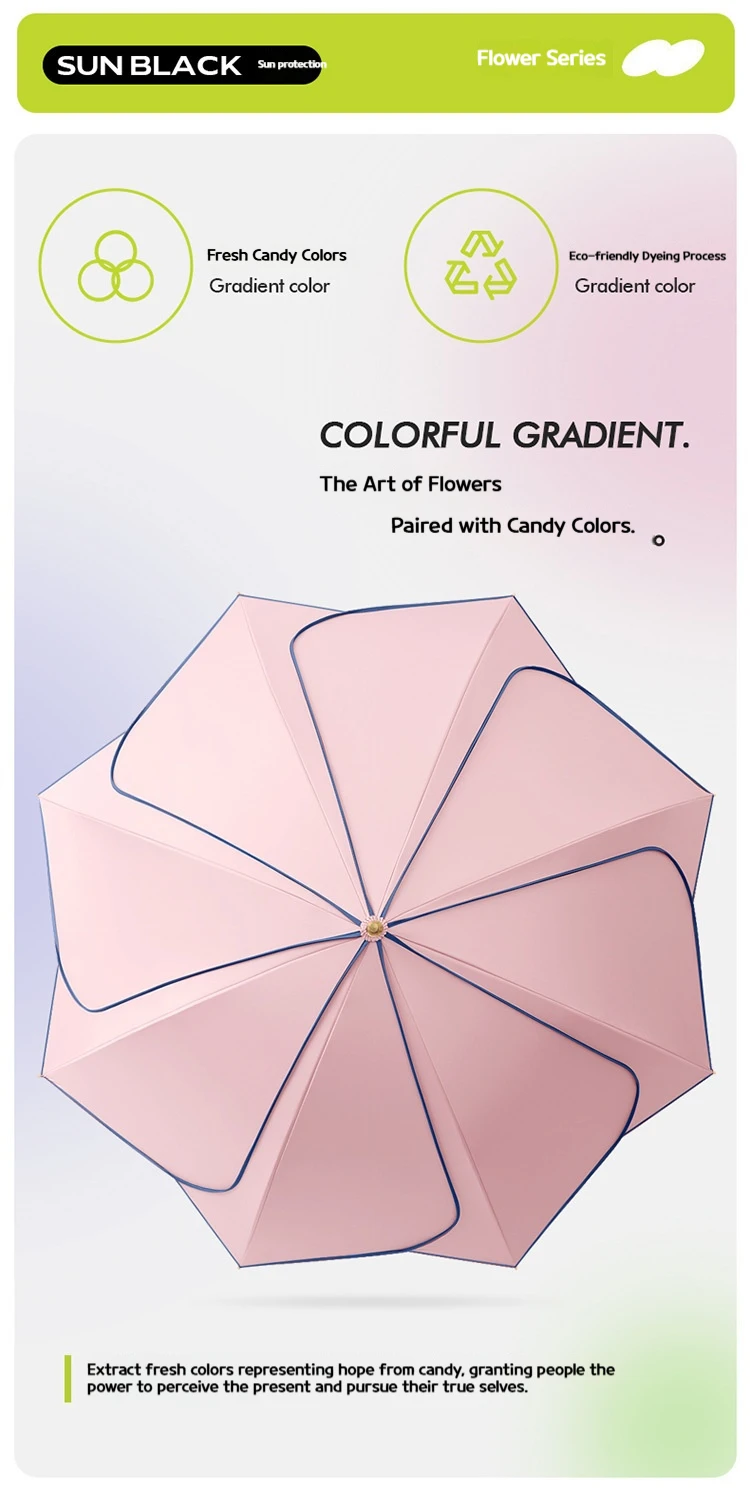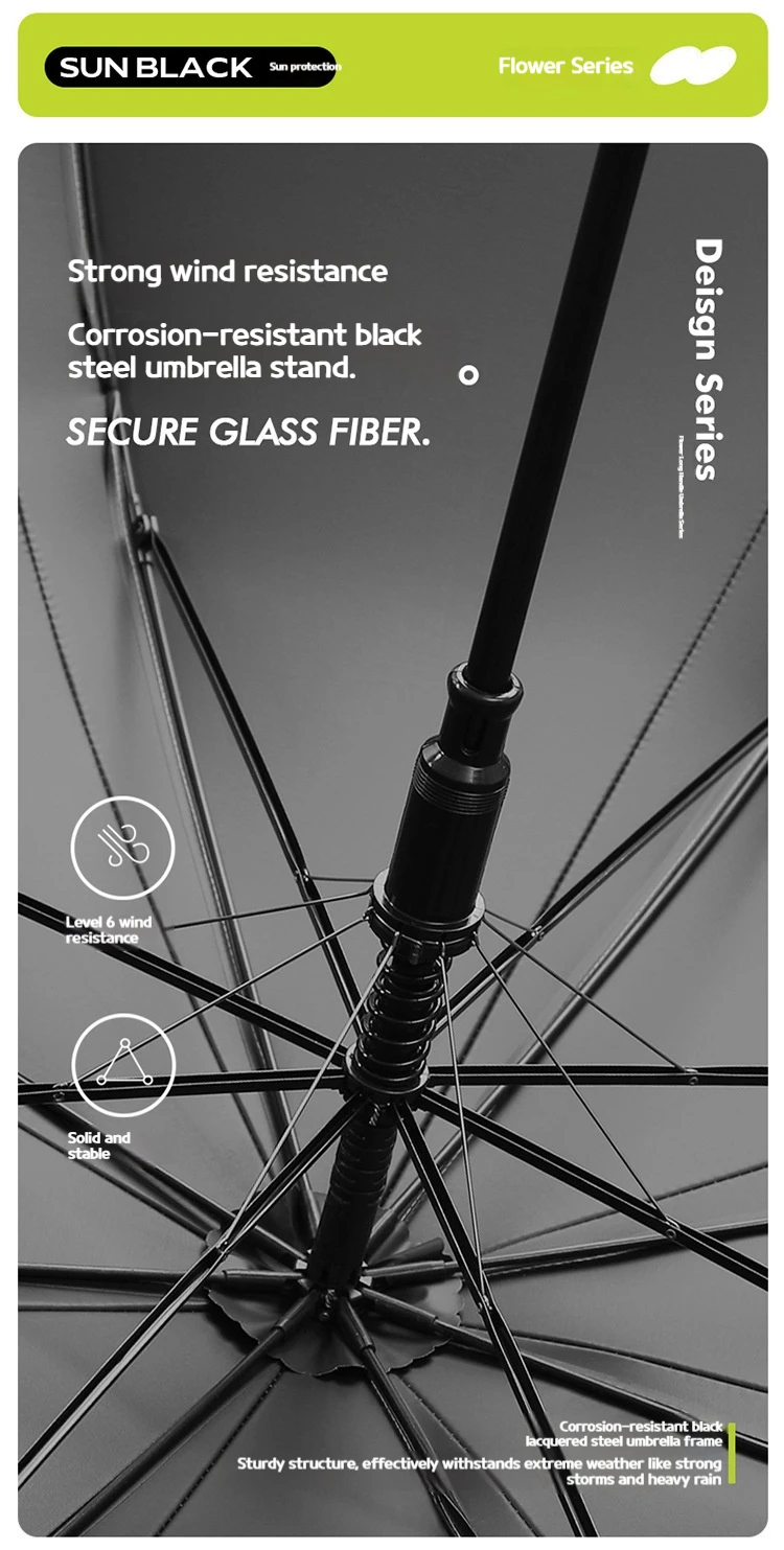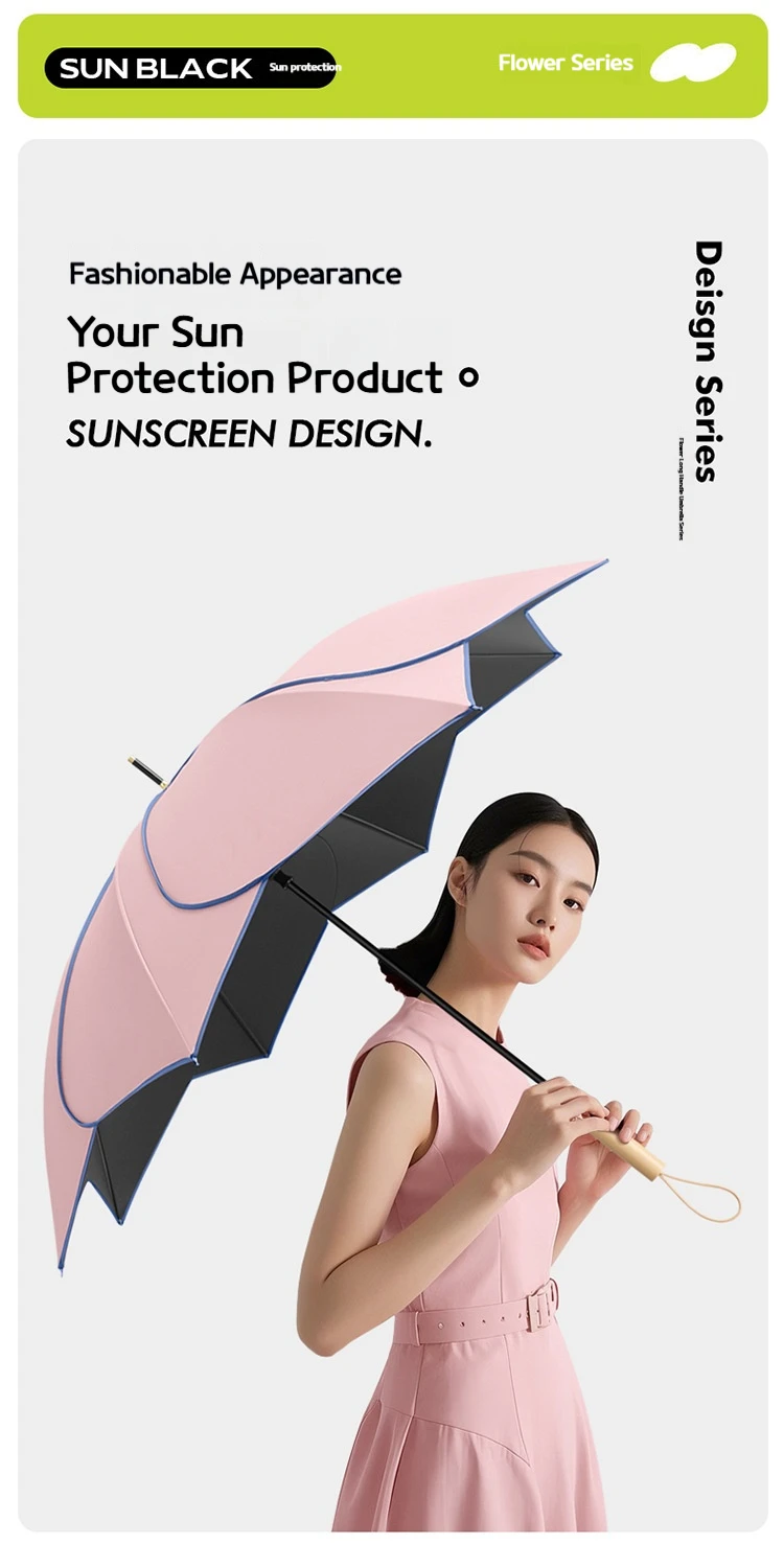 Ombrello a doppio uso per pioggia e sole con manico lungo a forma di fiore, protezione UV, protezione solare, ombrellone, ombrellone in vinile