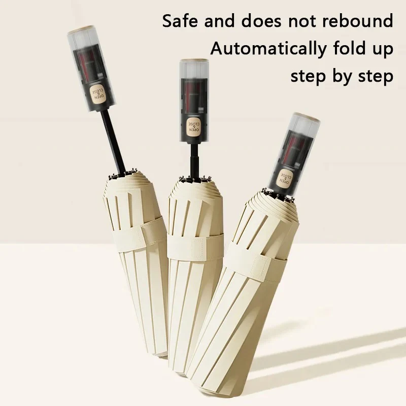 Ombrello a tre pieghe Rinforzare la chiglia Ombrello completamente automatico Pioggia Lucentezza Sole Ombrelli UV Protezione Anti-ribo Arresto immediatamente
