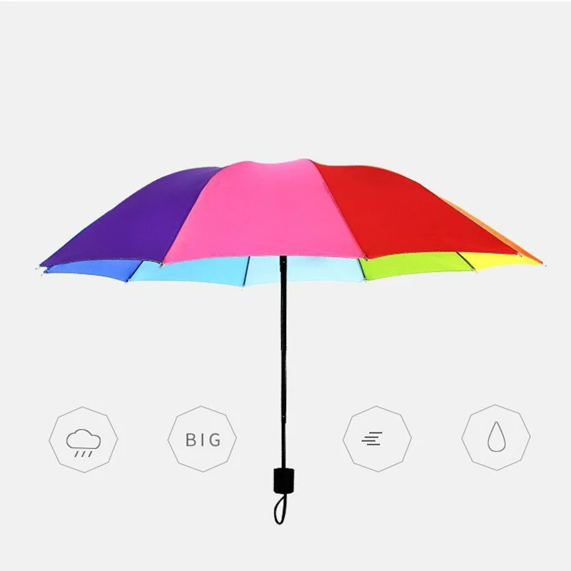 Ombrello arcobaleno alla moda Ombrello triplo con manico lungo Ombrello dritto pieghevole automatico resistente al vento