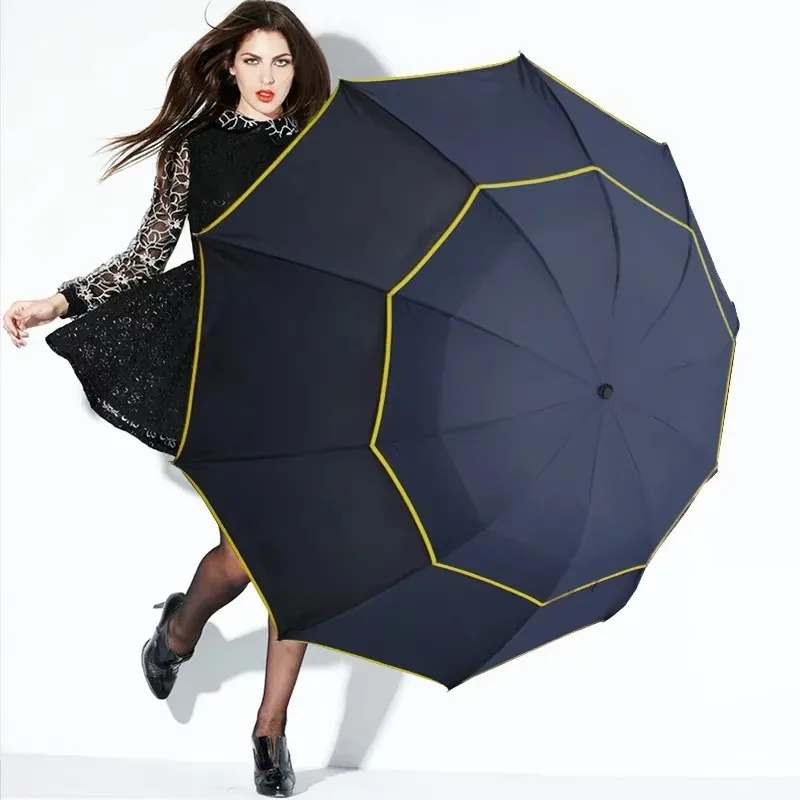 Ombrello doppio forte resistente al vento Pioggia Donna Grandi ombrelli pieghevoli non automatici Uomo Viaggi in famiglia Paraguas da lavoro