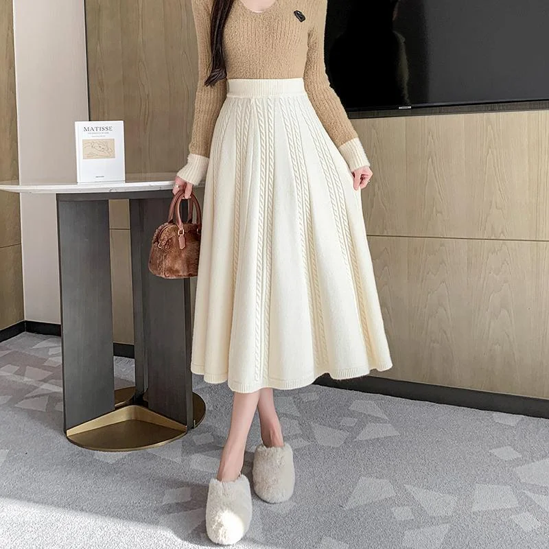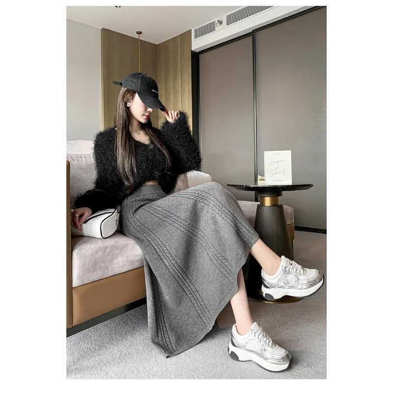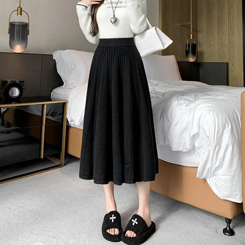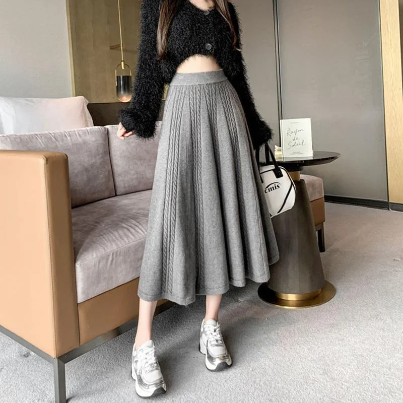 Ombrello grande sottile di media lunghezza da donna con gonna a pieghe lavorata a maglia di lana a vita alta autunno e inverno