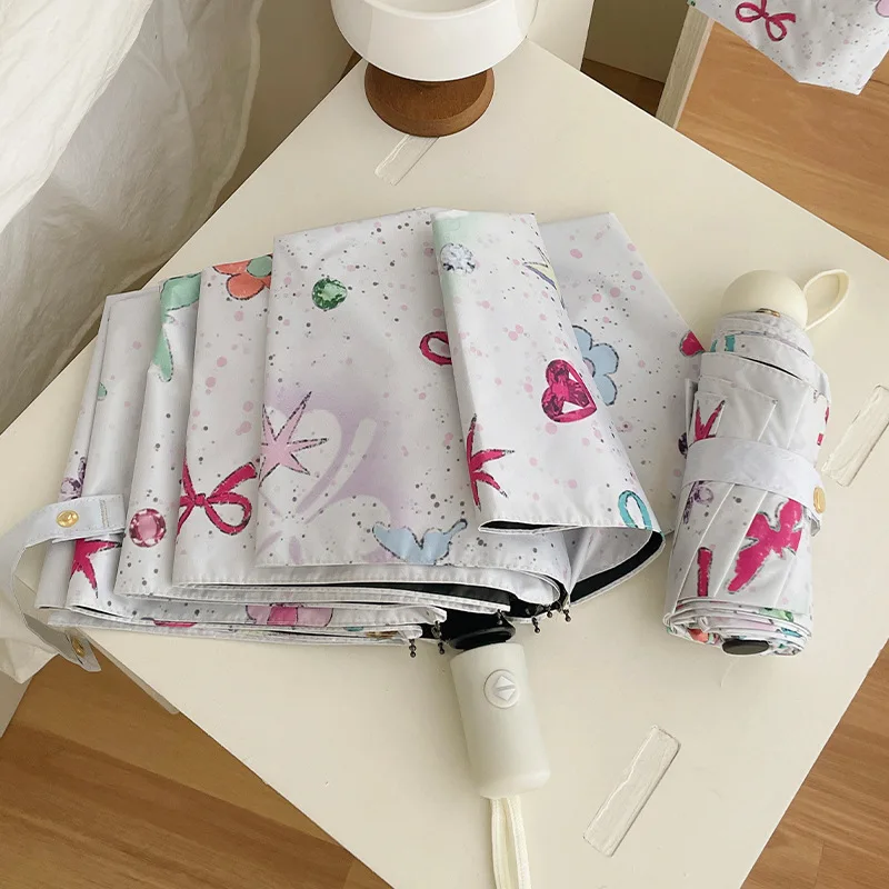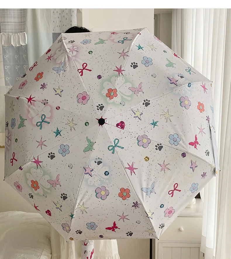 Ombrello pieghevole automatico Fashion Star Butterfly UPF 50+ Rivestimento nero Protezione solare e ombrellone da viaggio compatto antipioggia
