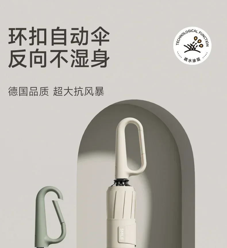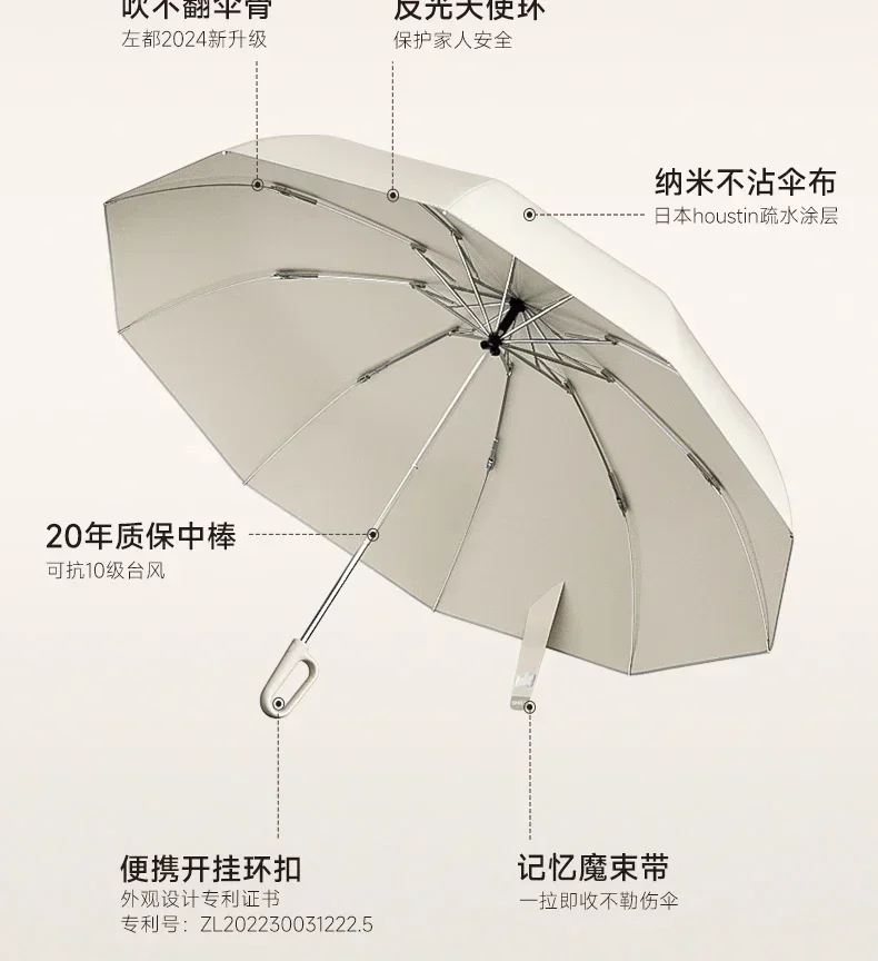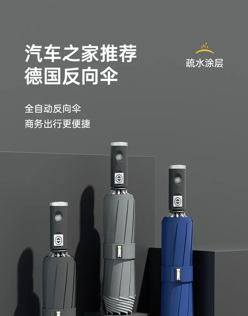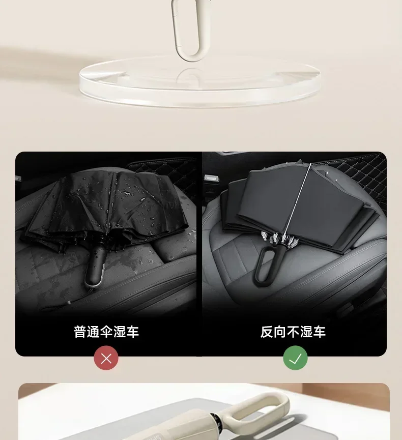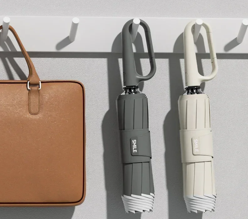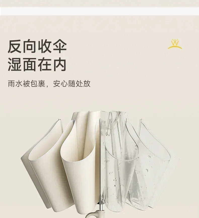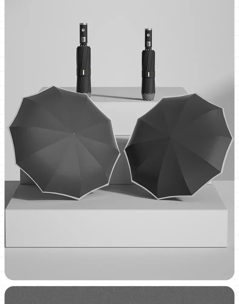 Ombrello pieghevole inverso completamente automatico con ombrelli UV a strisce riflettenti antivento per uomo e donna con manico a moschettone da viaggio
