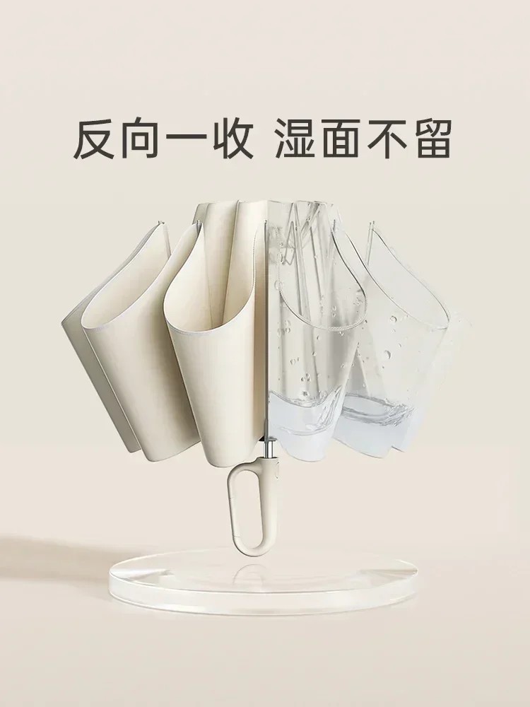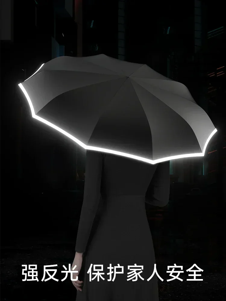 Ombrello pieghevole inverso completamente automatico con ombrelli UV a strisce riflettenti antivento per uomo e donna con manico a moschettone da viaggio