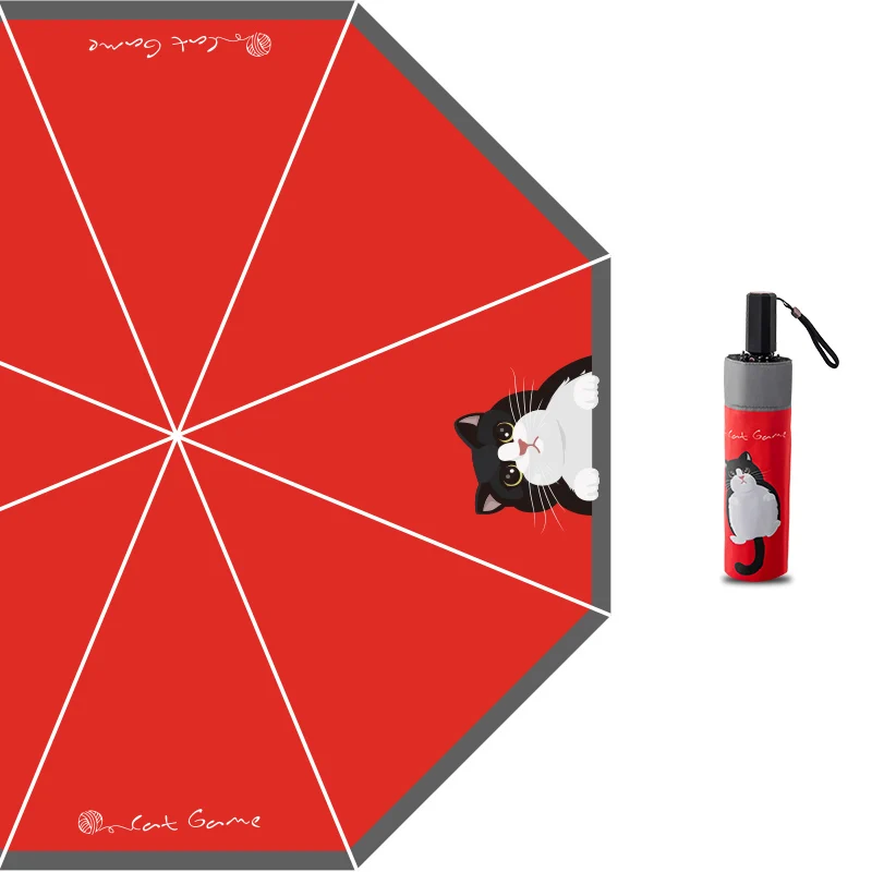 Ombrello pieghevole simpatico gatto 8 ossa casual carino creativo parasole in vinile protezione solare ombrellone da pioggia Ombrello portatile leggero donna