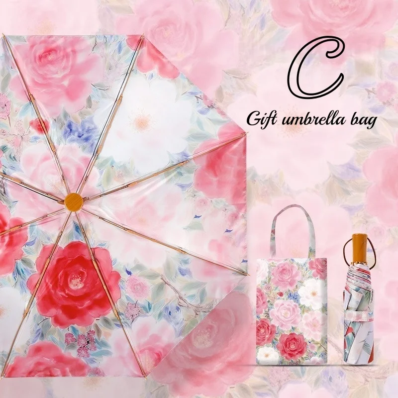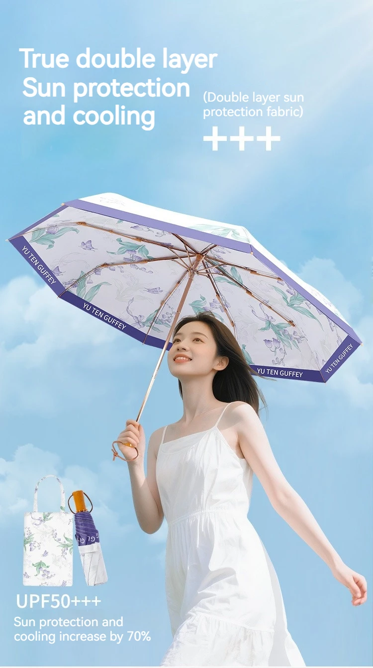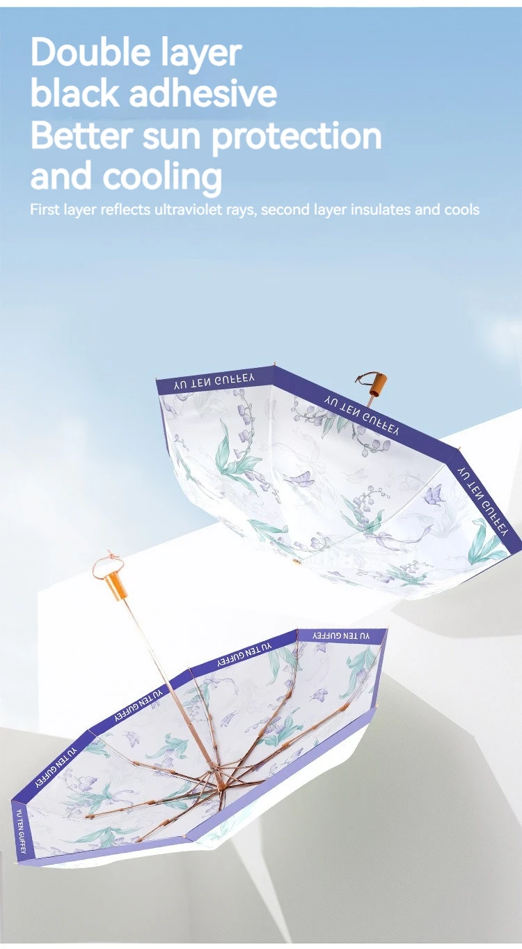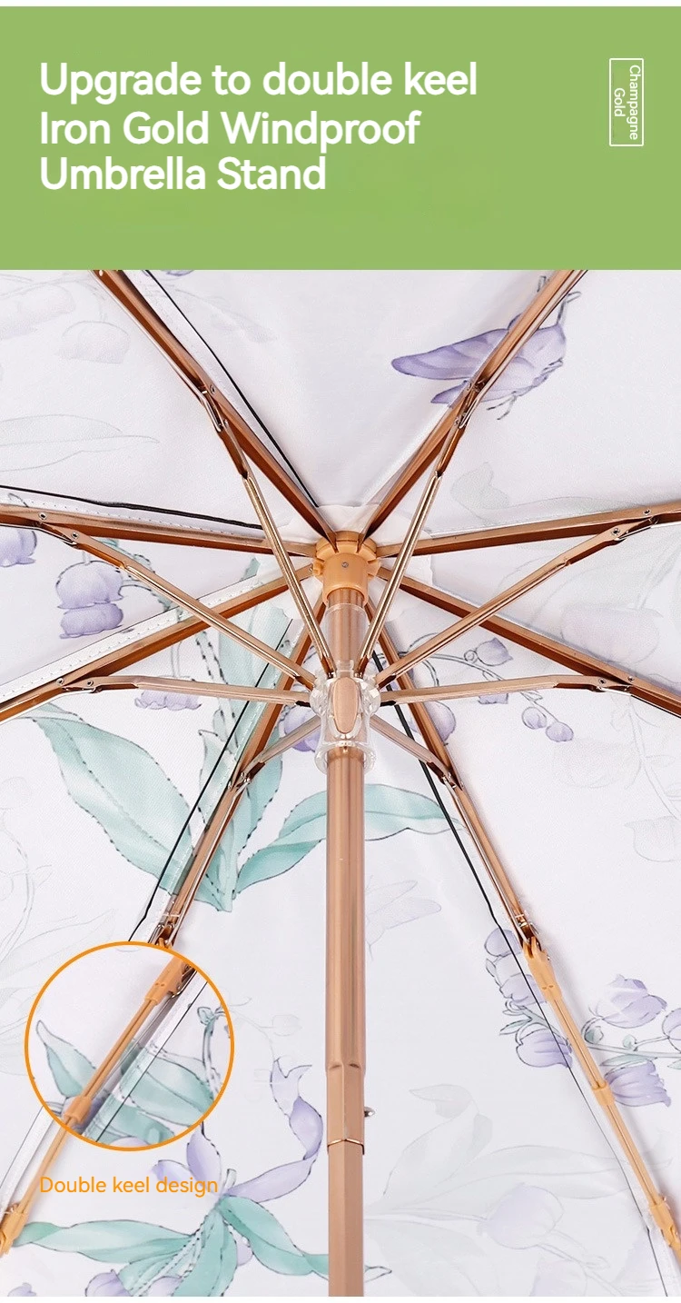 Ombrello portatile pieghevole con palo dorato di alta qualità e robusto con design elegante e alla moda adatto a qualsiasi tempo 1Ombrello portatile pieghevole con palo dorato di alta qualità e robusto con design elegante e alla moda adatto a qualsiasi tempo