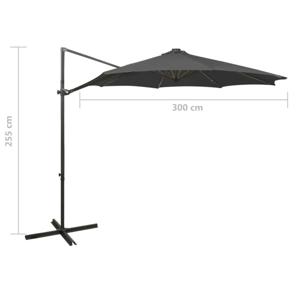 Ombrellone a sbalzo con palo e luci a LED Antracite 300 cm