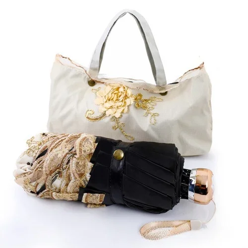 Ombrellone Ombrello pieghevole anti-UV Ombrello con ricamo floreale vintage Ombrello da principessa regalo