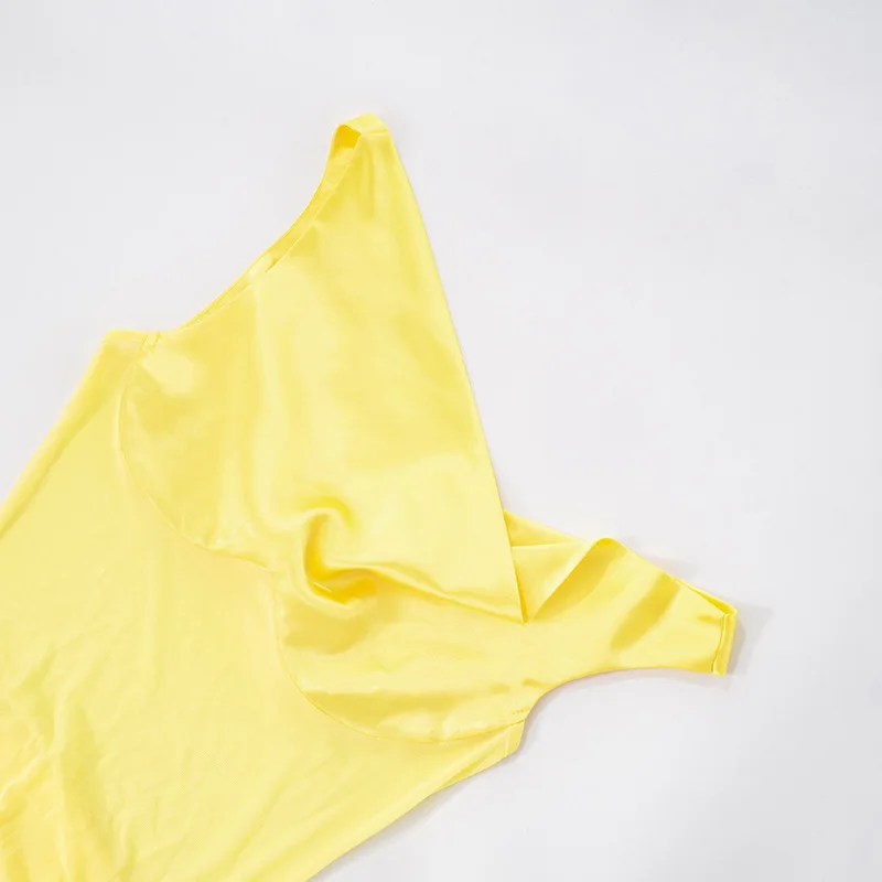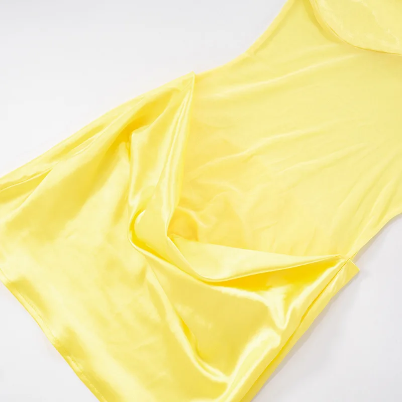 Oniflyme Mini abito in raso patchwork a rete da donna con spalla inclinata senza schienale increspato abiti da festa slim abiti aderenti senza maniche