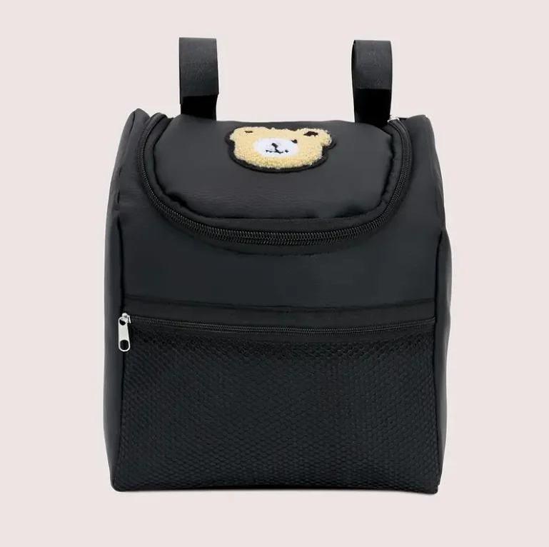 Organizer da appendere per marsupio e passeggino con tasca con cerniera per faccia d’orso, borsa portaoggetti portatile per viaggi, culla, passeggino