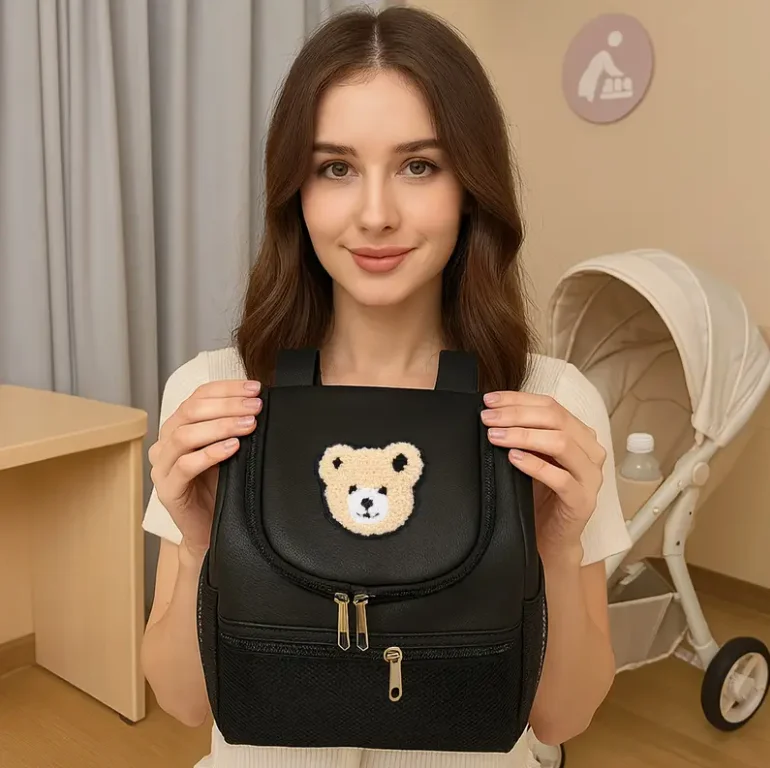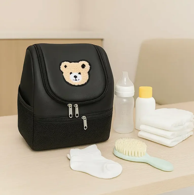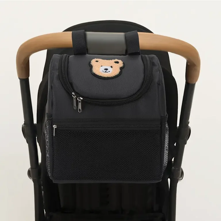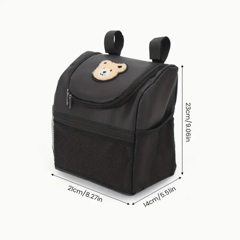 Organizer da appendere per marsupio e passeggino con tasca con cerniera per faccia d’orso, borsa portaoggetti portatile per viaggi, culla, passeggino