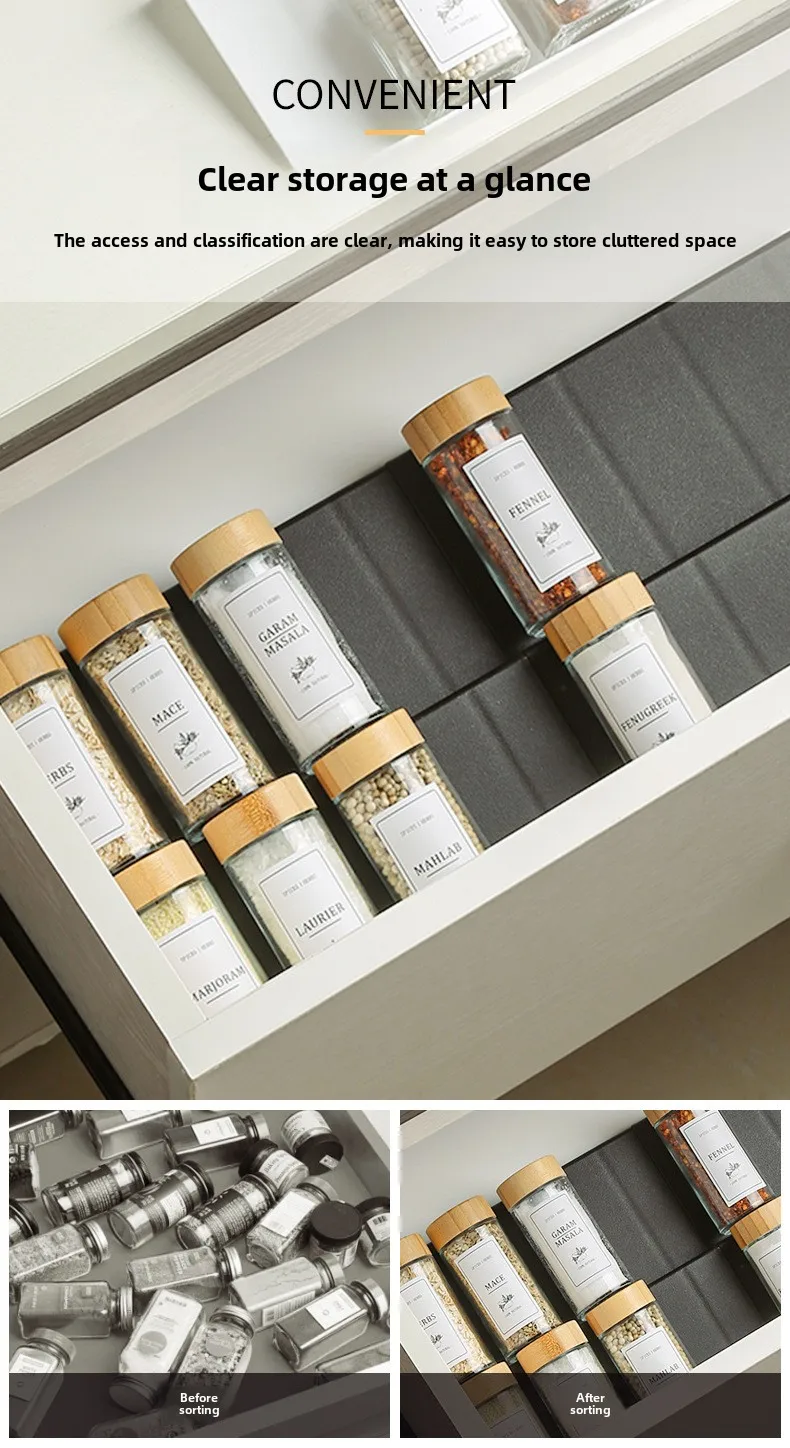 Organizzatore per cassetti per spezie da cucina Portaspezie regolabile per bottiglie di condimento per spezie Armadietto dispensa Accessori per organizer da cucina 1Organizzatore per cassetti per spezie da cucina Portaspezie regolabile per bottiglie di condimento per spezie Armadietto dispensa Accessori per organizer da cucina
