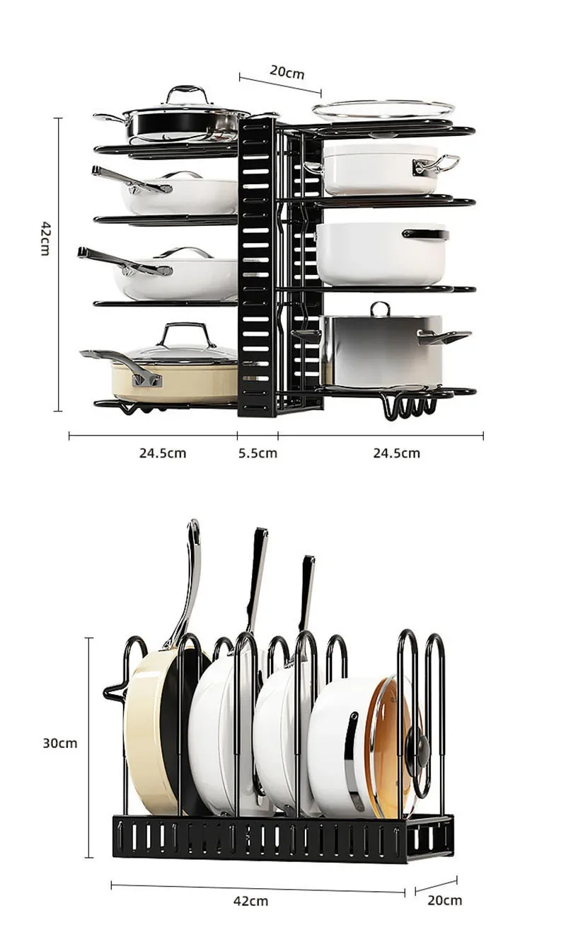 Organizzatore per pentole a 5/8 livelli, supporto per armadietto salvaspazio in metallo durevole per pentole, padelle e coperchi, mantiene la tua cucina ordinata e ordinata 1Organizzatore per pentole a 5/8 livelli, supporto per armadietto salvaspazio in metallo durevole per pentole, padelle e coperchi, mantiene la tua cucina ordinata e ordinata