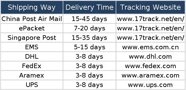 Se il costo dell’ordine supera US $ 150, ti fornireamo il servizio di spedizione gratuito DHL, FedEx o Aramex. (ricama nazionale remota US $ 200)