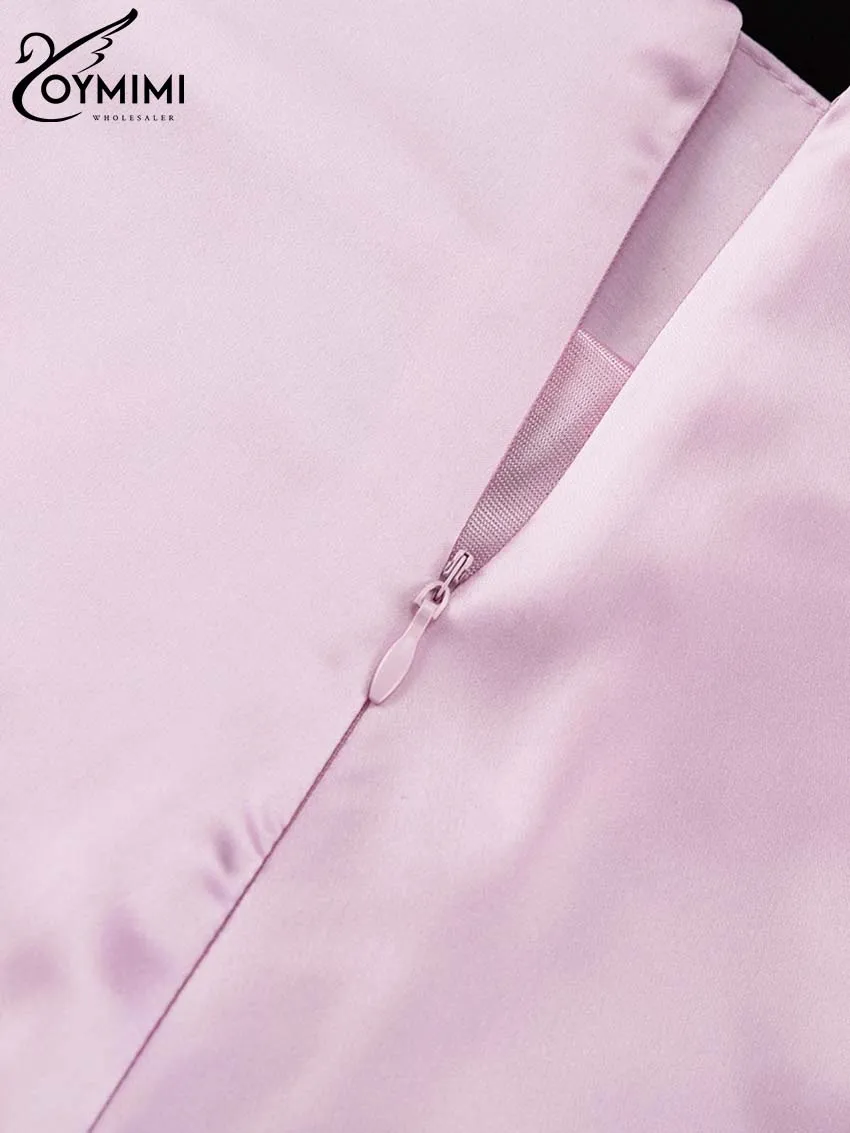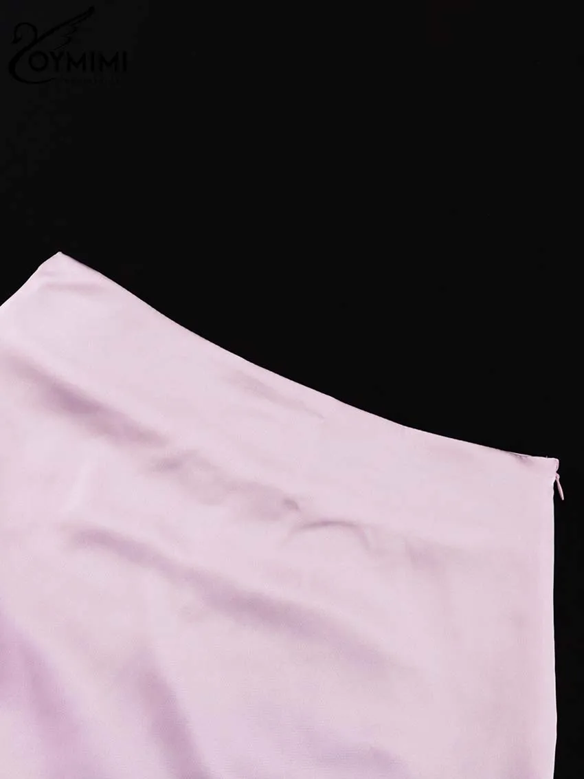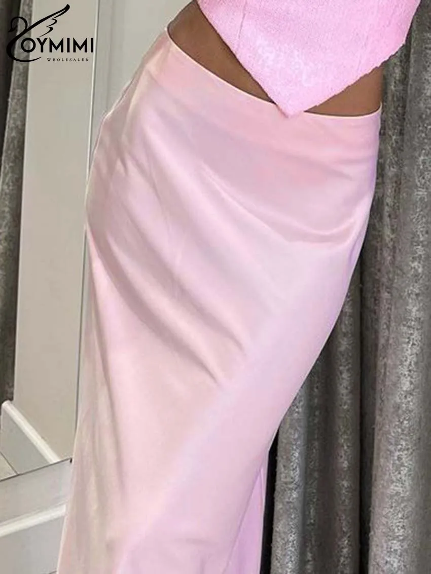 Oymimi moda gonne in raso rosa per donna elegante sottile solido gonne a pavimento Streetwear Casual semplice gonna dritta femminile