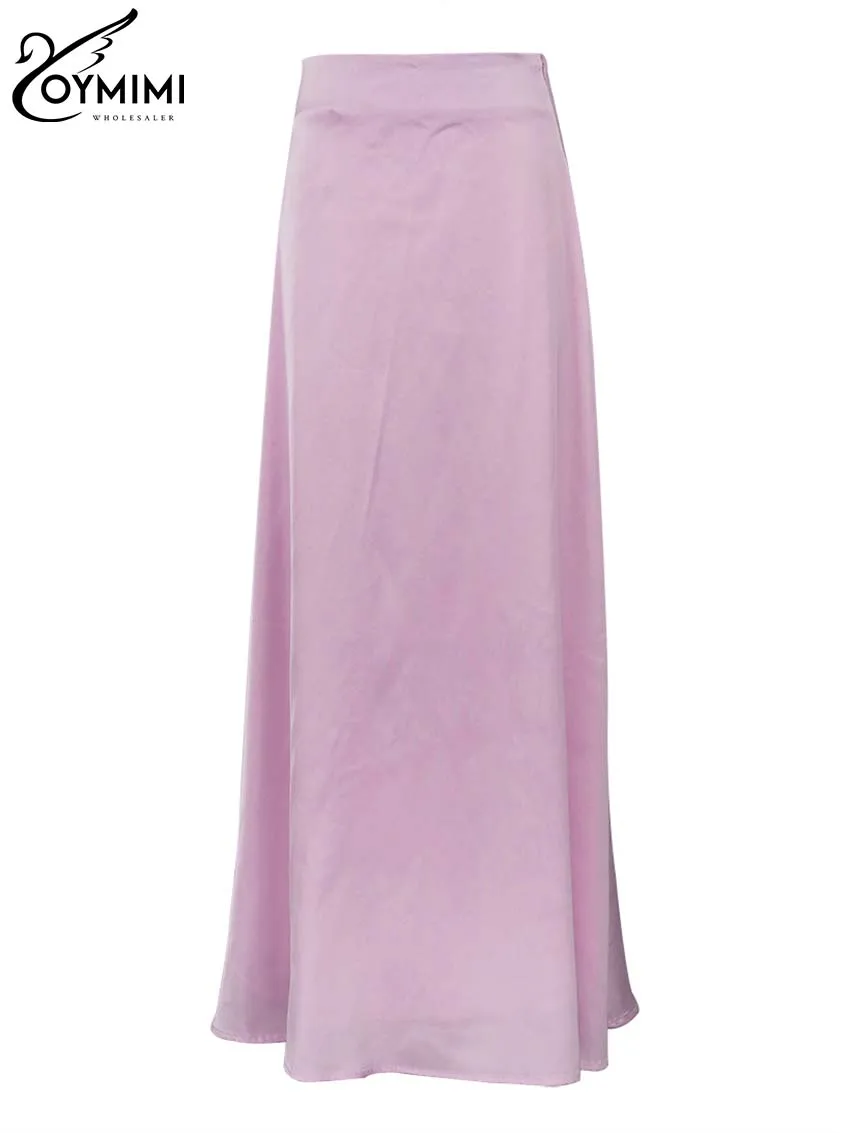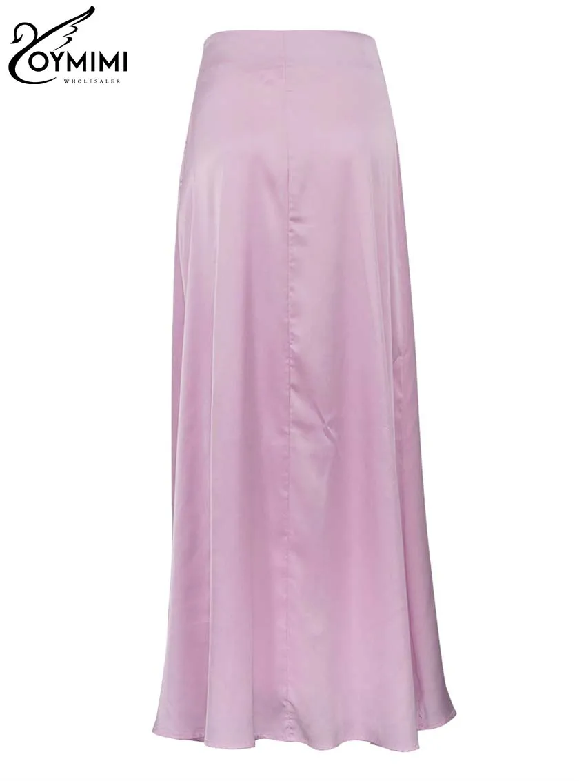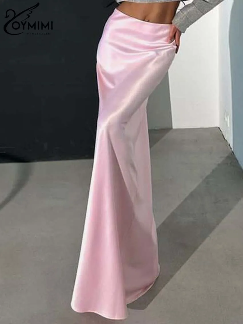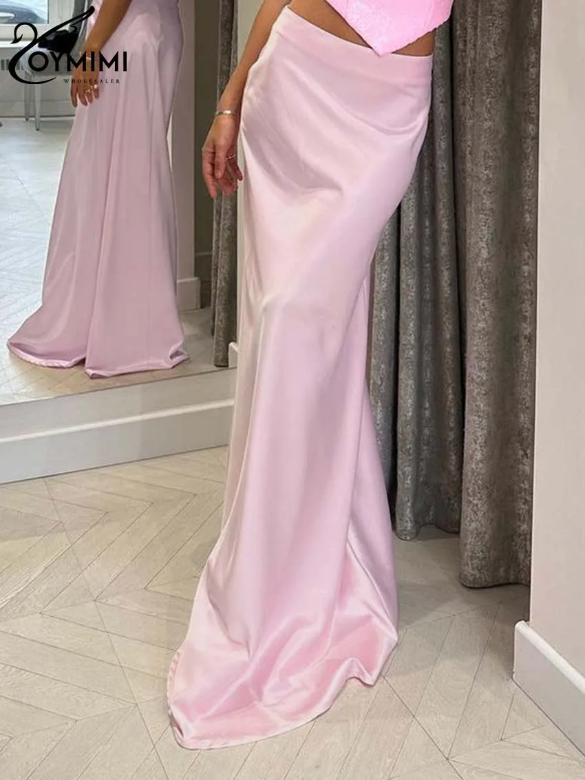Oymimi moda gonne in raso rosa per donna elegante sottile solido gonne a pavimento Streetwear Casual semplice gonna dritta femminile