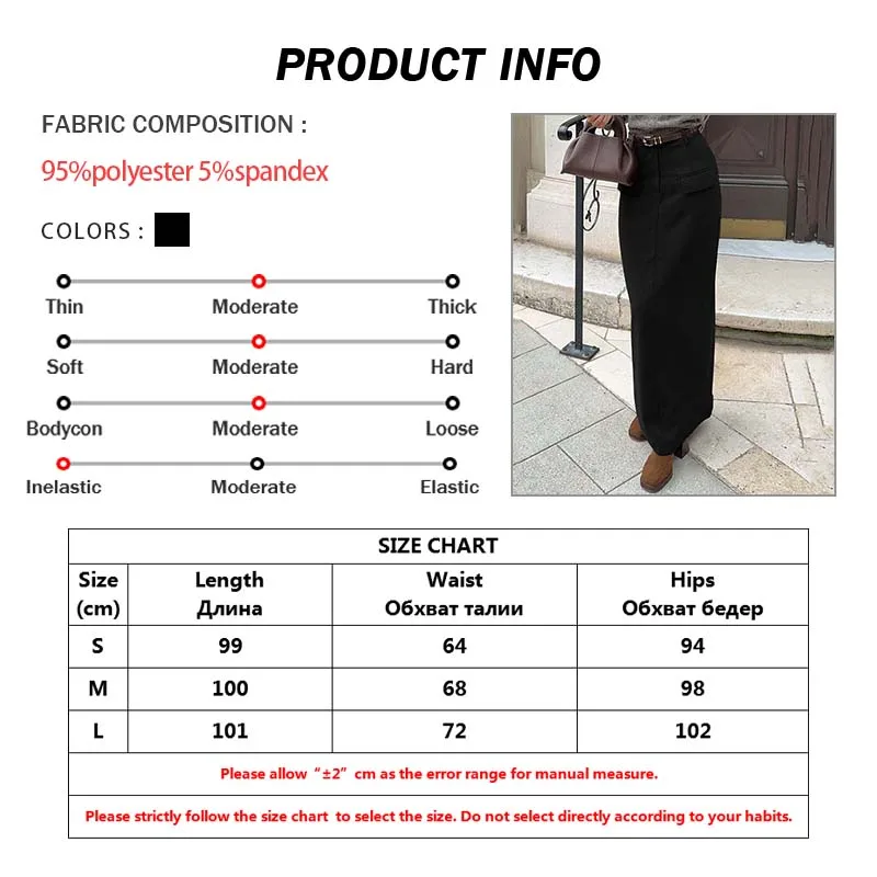 Oymimi Moda Tasche nere Gonna da donna Elegante Gonne dritte a vita alta Casual Solid Gonne alla caviglia Abbigliamento femminile