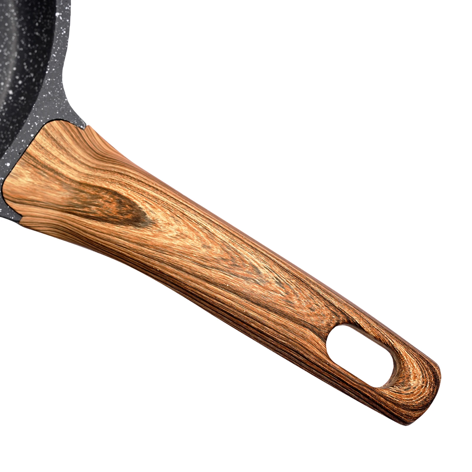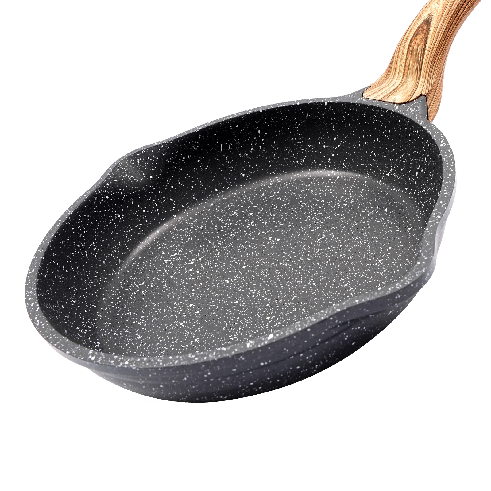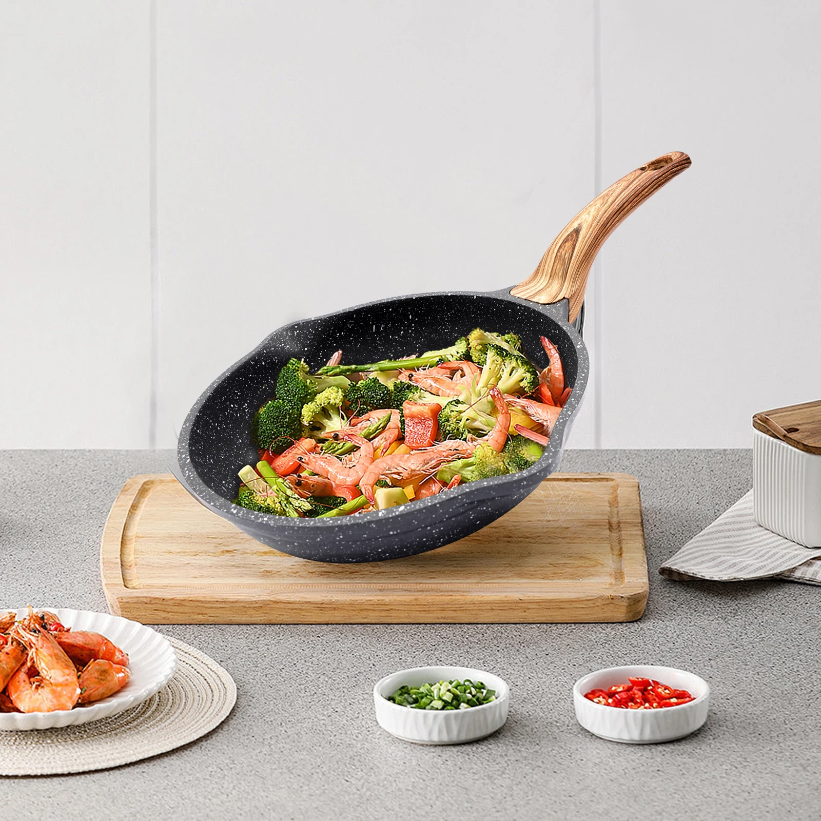 Conveniente Progettato: il rivestimento antiaderente in pietra medica è libero da sostanze nocive come PFOA, piombo e cadmio, ideale per una cucina sana.