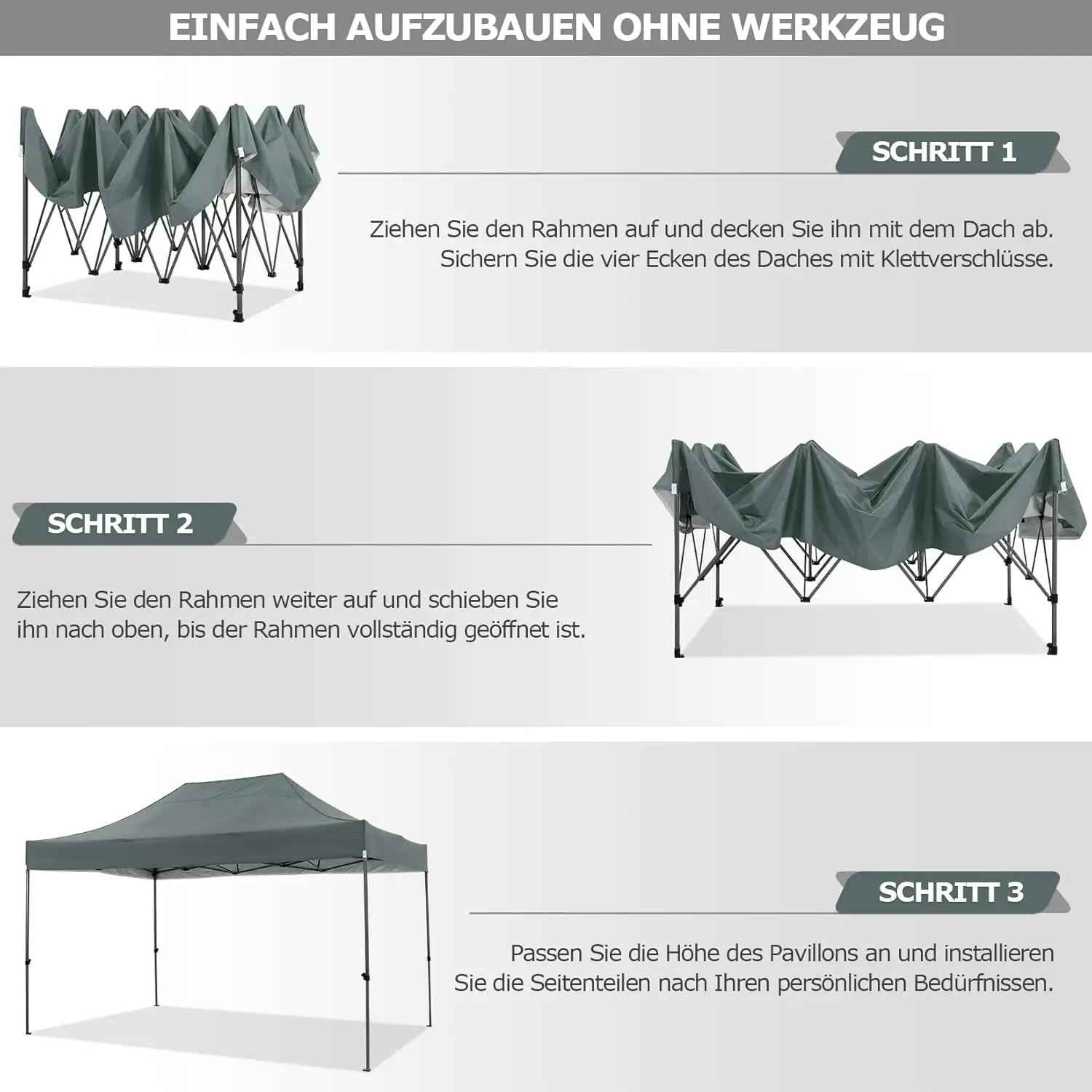 Padiglione pieghevole 3×4,5 m impermeabile con 4 pareti laterali, padiglione da giardino Protezione UV Tenda per feste Festival Protezione solare per il campeggio