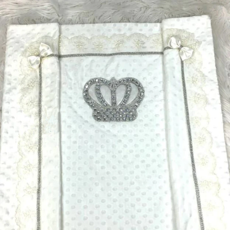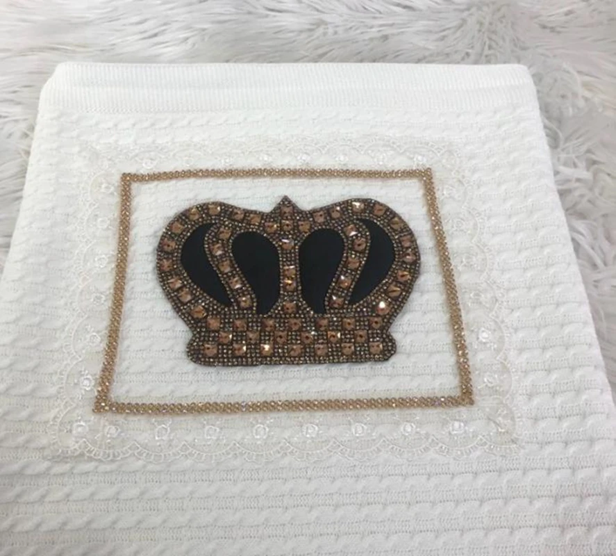 Il nostro set da 4 pezzi è realizzato in morbido cotone spesso.Sono impreziositi da bottoni in strass, gioielli con corona e fiocchi.