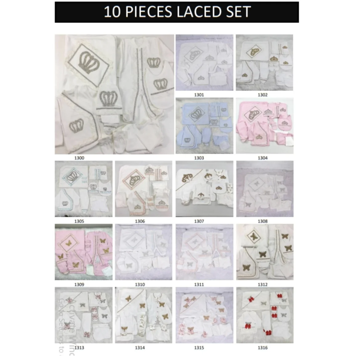 Il nostro set da 4 pezzi è realizzato in morbido cotone spesso.Sono impreziositi da bottoni in strass, gioielli con corona e fiocchi.