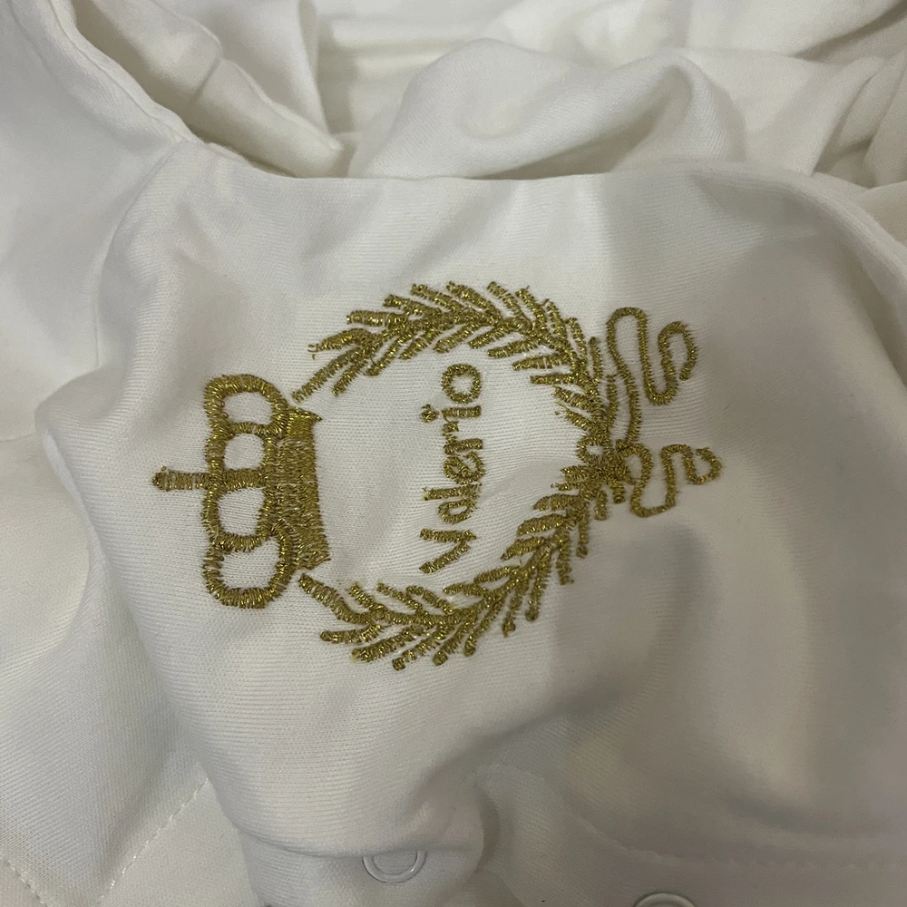 Ogni dettaglio decorativo è incollato individualmente sulla tutina.