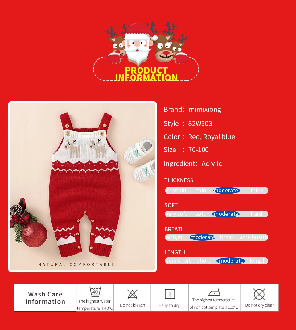 Pagliaccetti natalizi per bambini Vestiti Renna rossa Maglia Neonato Ragazzo Ragazza Tute Inverno Senza maniche Infantile Bambini Tute unisex 0-18 m