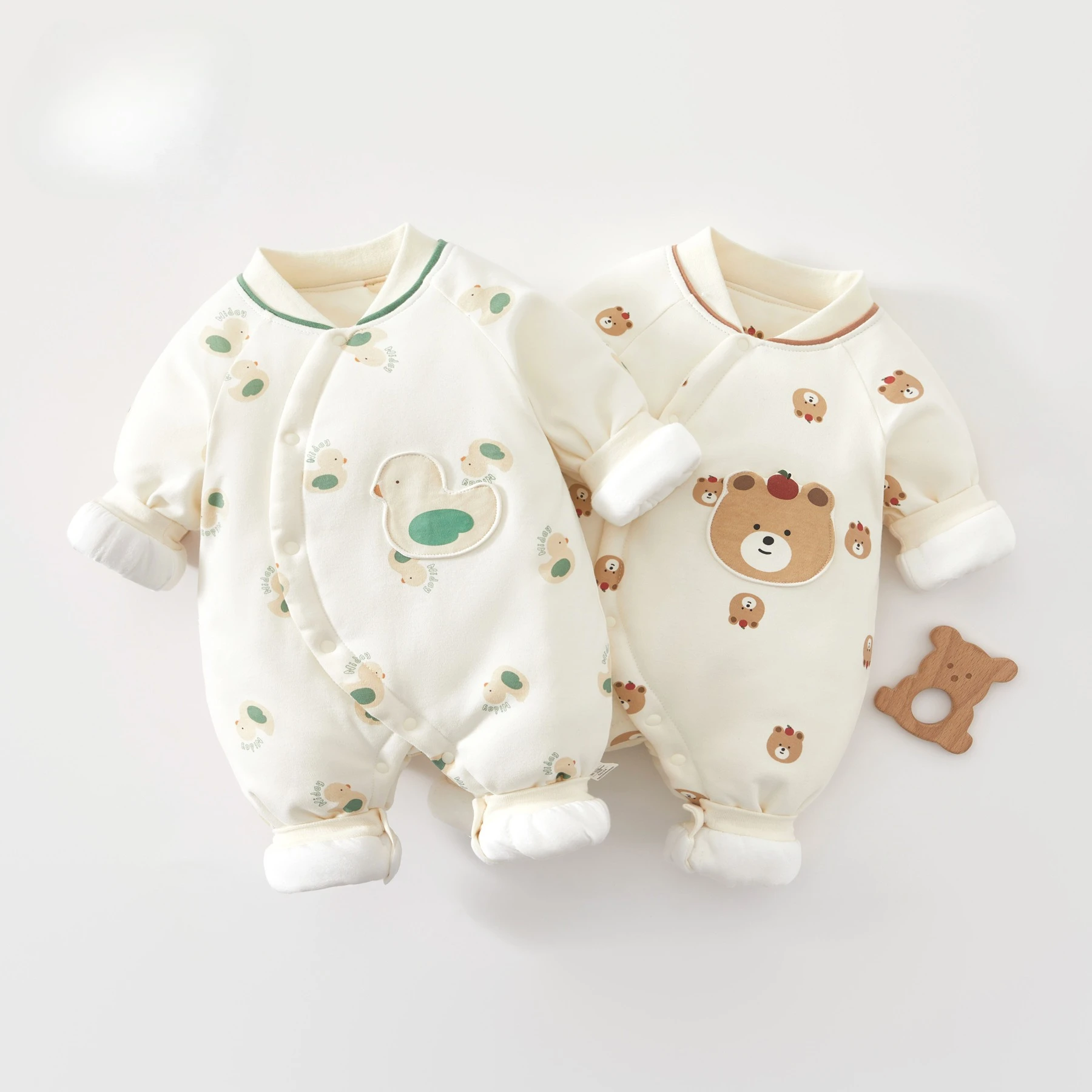 Pagliaccetto invernale in cotone ispessito per neonato, tuta calda stile coreano, tutina kimono unisex per neonato, 0-12 mesi