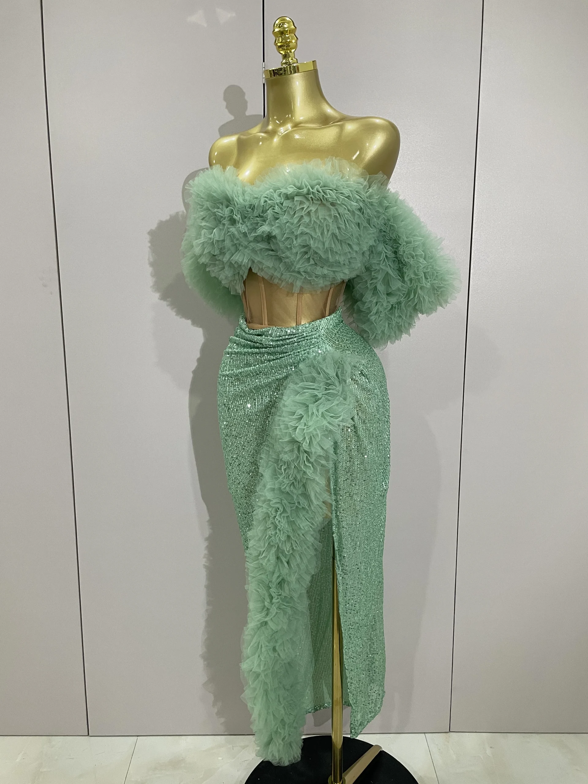 Abiti da festa da sera eleganti sexy Abito da festa a maniche corte con volant a fessura alta 2025 Autunno Inverno Primavera Nuova moda casual