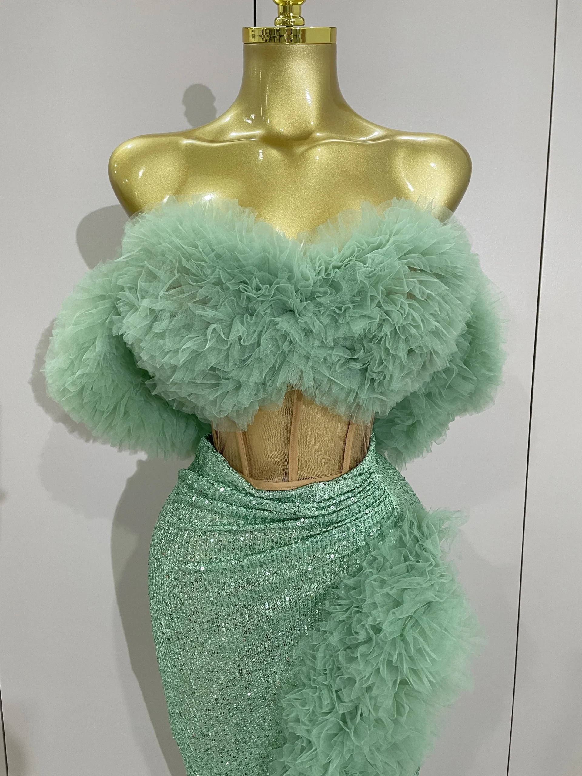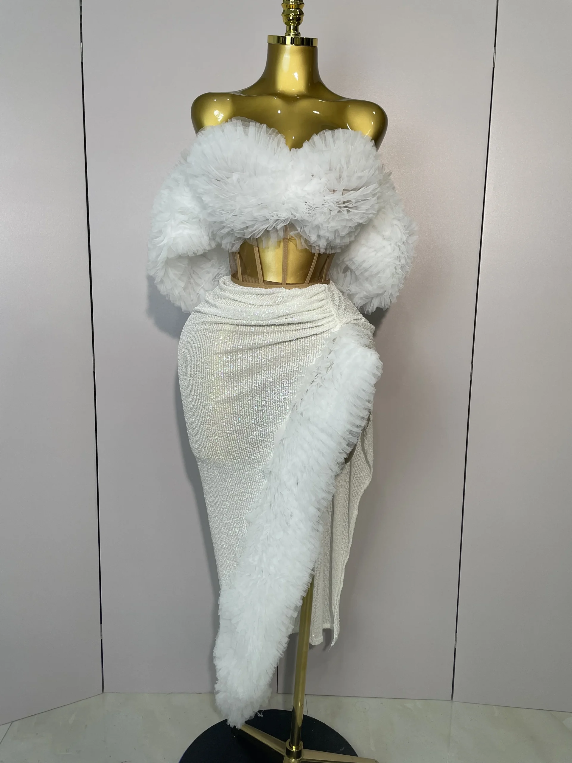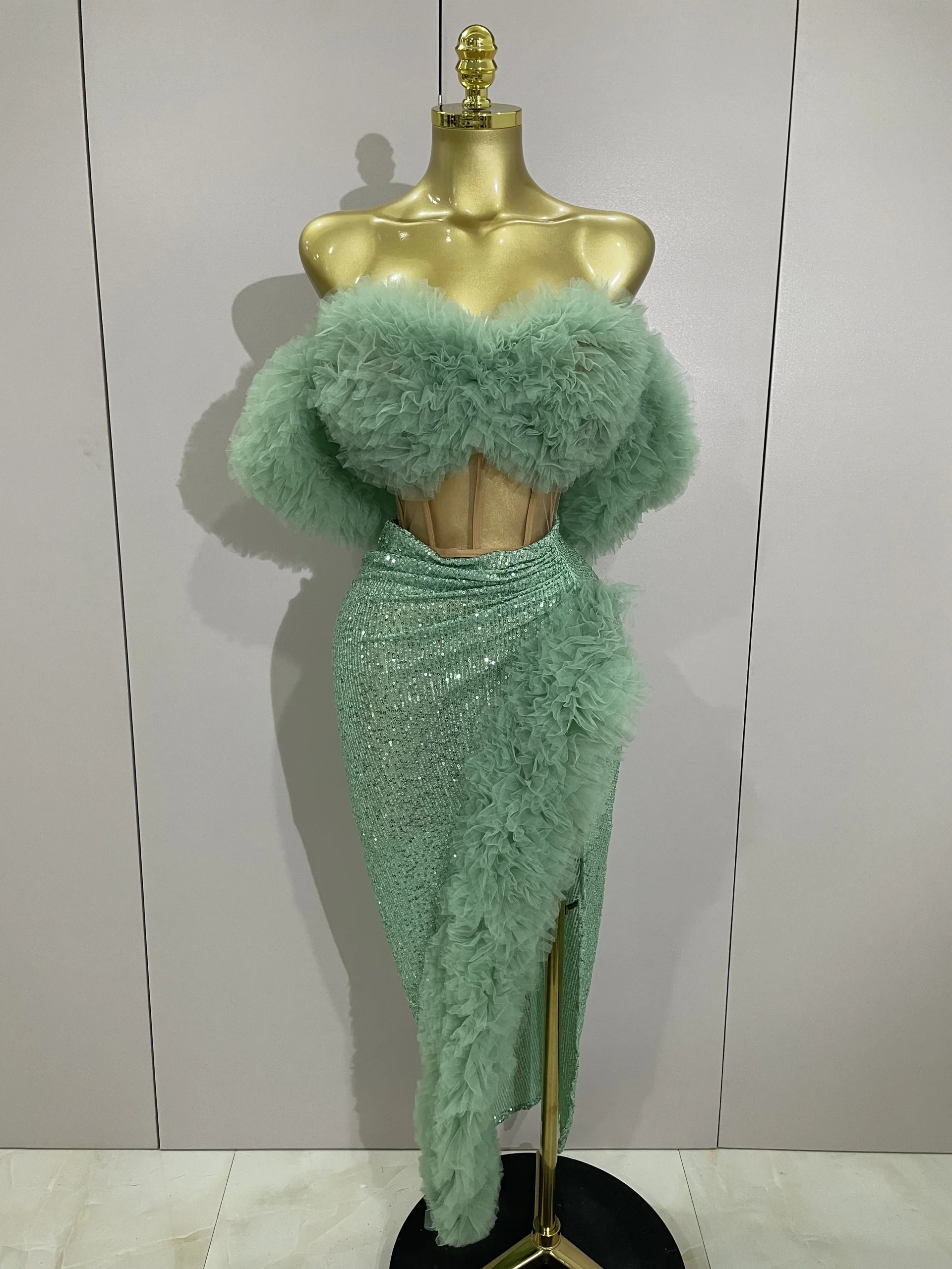 Paillettes lucide Top Gonna corta Due pezzi Set 2025 Donne Sexy Festeggia la sera Prom Compleanno Abito da festa Nightclub Stage Outfit