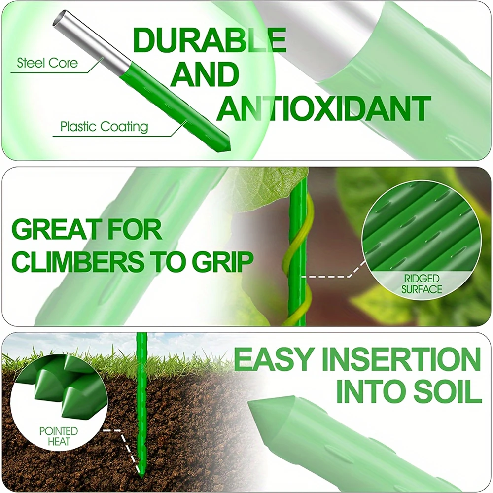 Palo per piante in acciaio rivestito con paletti da giardino da 8 pezzi per fissare alberi e piante, supporti per bastoncini di pomodoro per vaso, supporto per piante da giardino