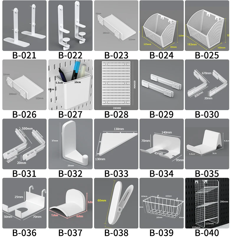 Pannello forato multifunzionale a parete senza punzonatura, perfetto per riporre l’elettronica domestica/ufficio come tastiere e mouse.