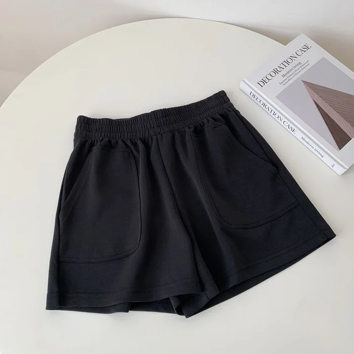 Pantaloncini da casa a gamba larga con strato d’aria color crema setosa per donna, edizione coreana estiva, pantaloni caldi sportivi larghi e sottili a vita alta
