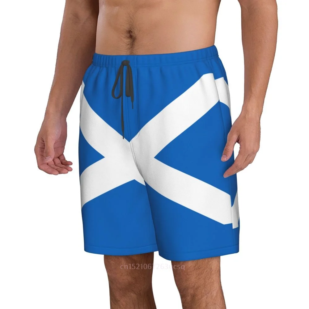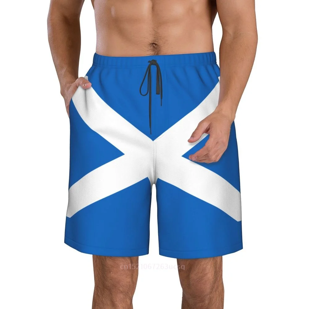 Pantaloncini da surf da uomo stampati in 3D con bandiera scozzese estiva in poliestere 2025 Pantaloni estivi da corsa con tasca da spiaggia