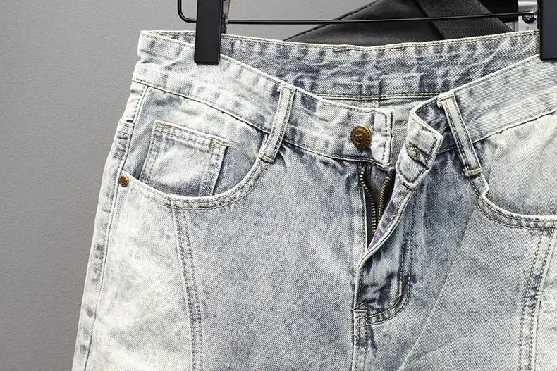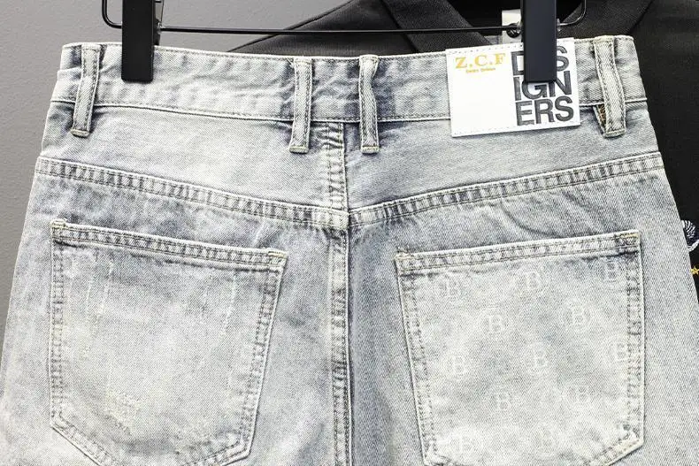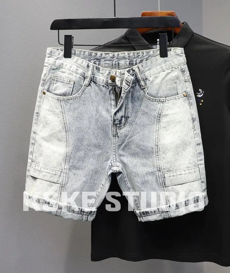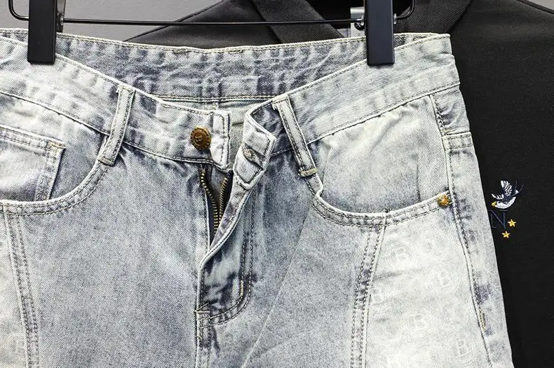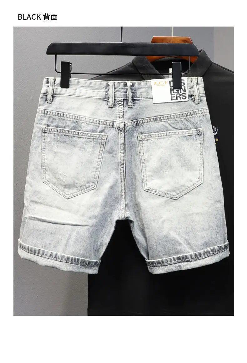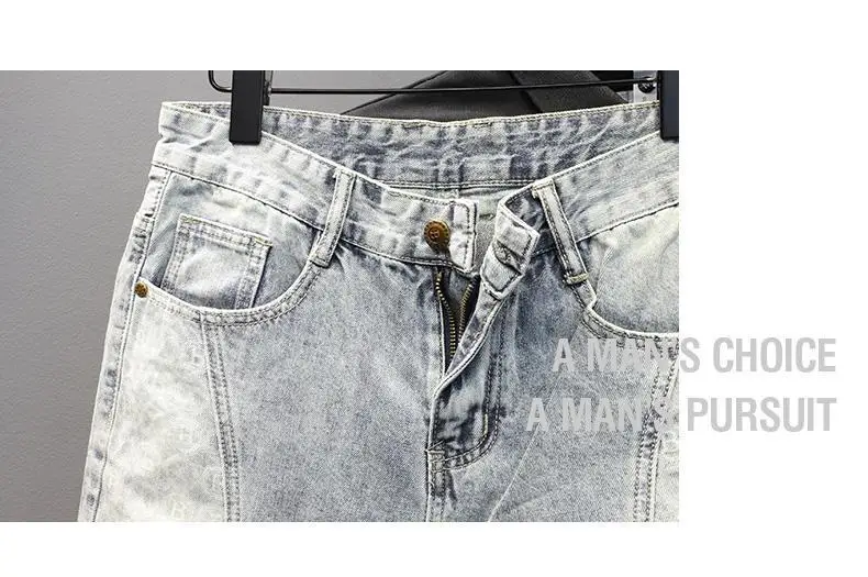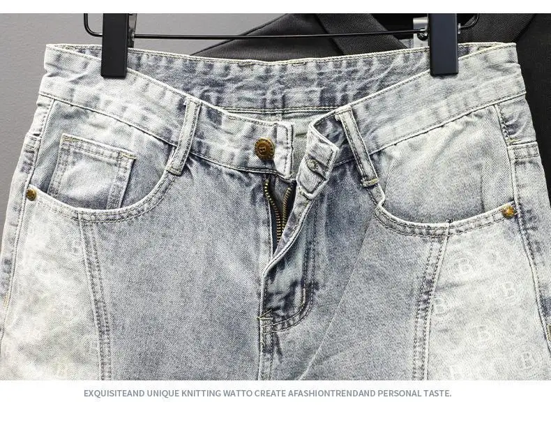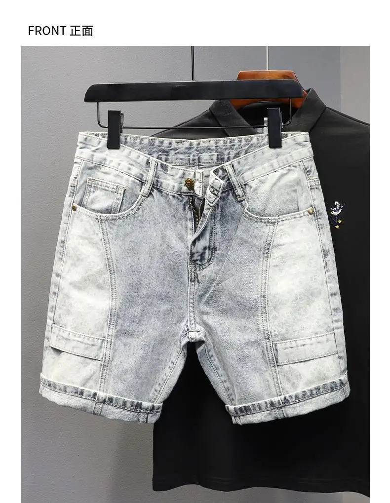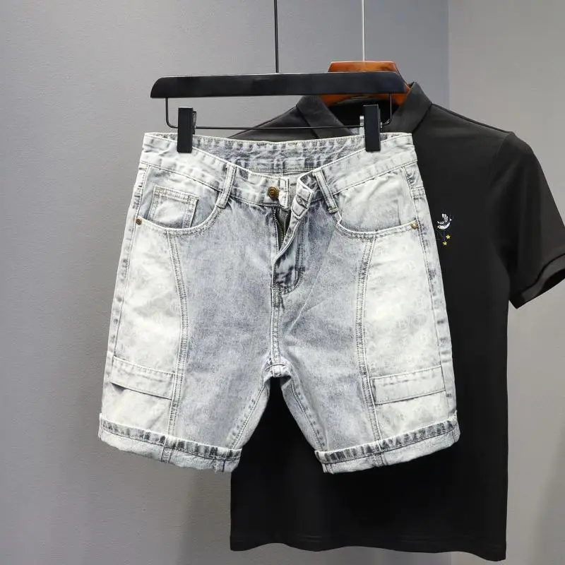 Pantaloncini di jeans da uomo 2025 Estate Nuova giunzione Colori contrastanti Slim Piccolo piede Pantaloni medi alla moda Abbigliamento uomo Jeans classici 1Pantaloncini di jeans da uomo 2025 Estate Nuova giunzione Colori contrastanti Slim Piccolo piede Pantaloni medi alla moda Abbigliamento uomo Jeans classici